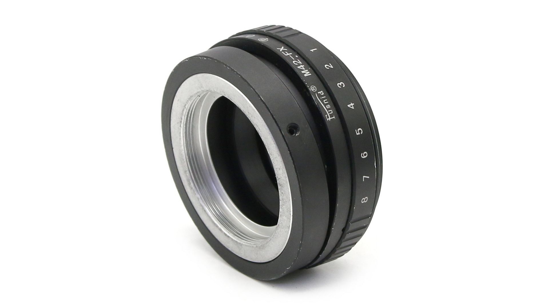 С одной стороны байонет камеры - Fujifilm FX, а с другой - М42 для объективов. Конструкция позволяет наклонять одну часть относительно другой в восьми положениях.