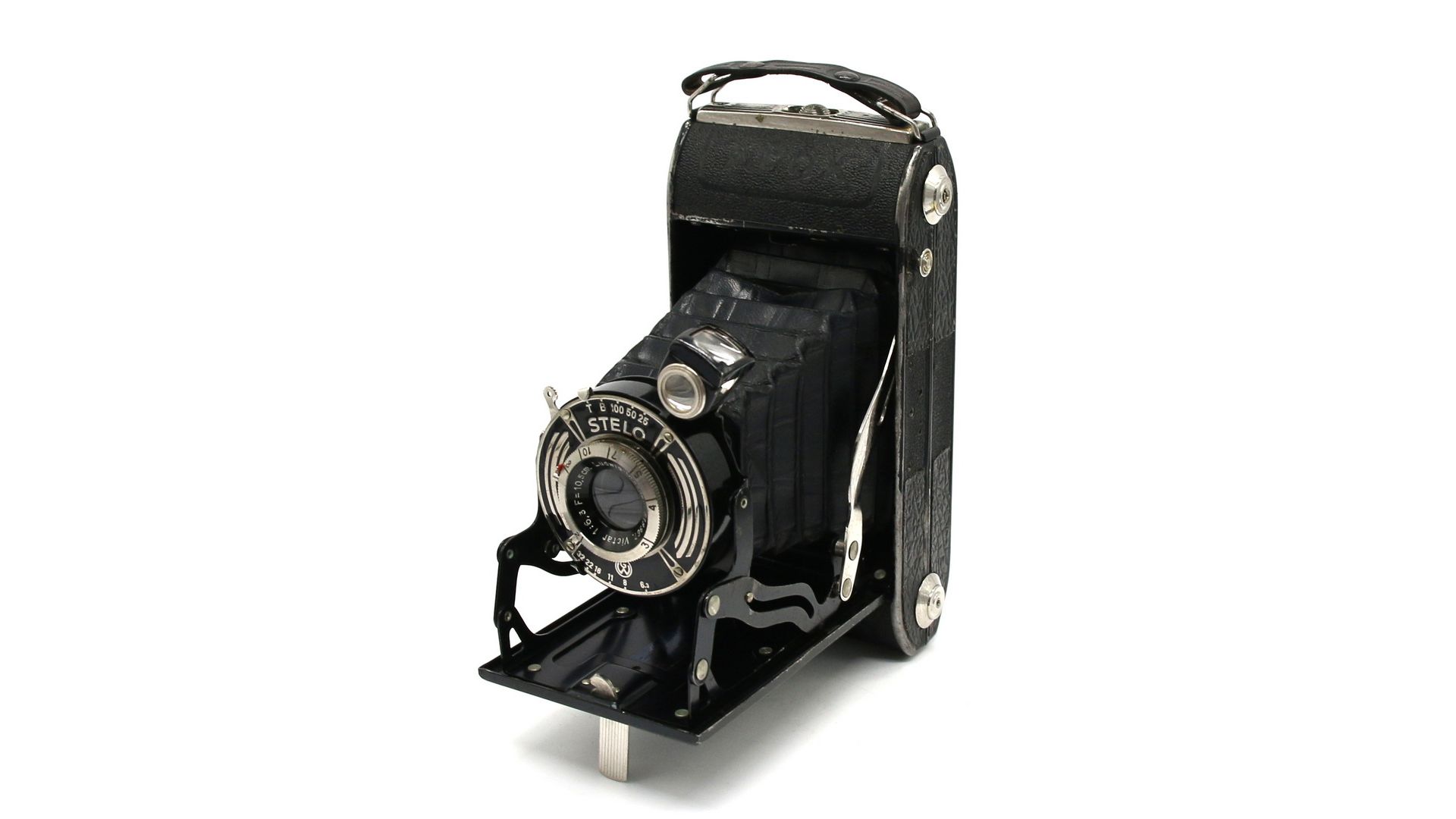Камера оснащена объективом Victar-Anastigmat 4.5/75mm. Хороший конструктив. Фотоматериал - пленка типа 120. Размер кадра 6х9см