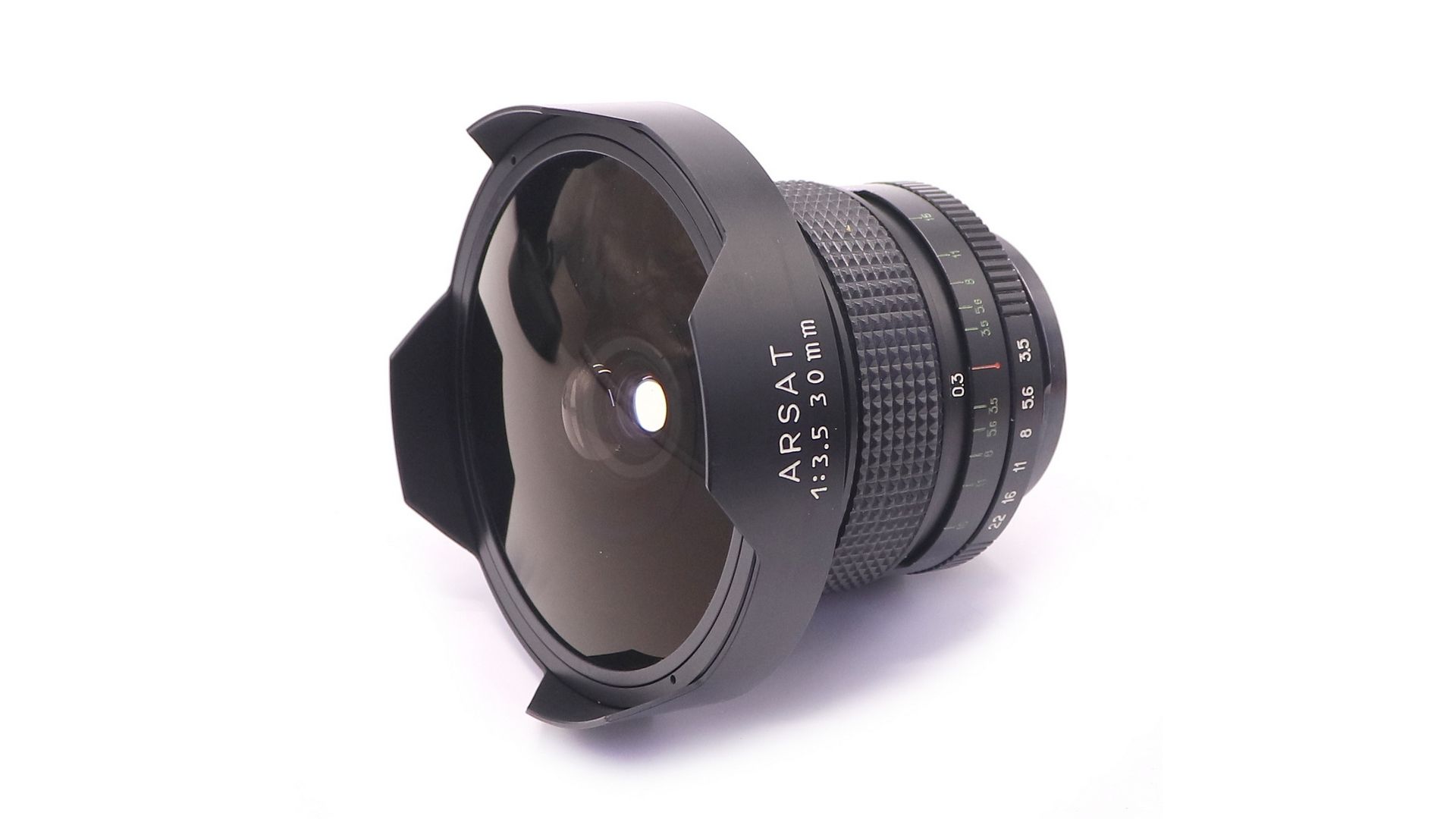 Арсат 30mm f/3.5 - широкоугольный объектив с постоянным фокусным расстоянием выполненный по схеме диагонального фишая (угол зрения по диагонали - 180 град.)