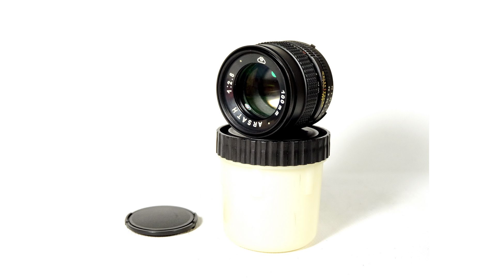 Оптическая схема: 5 элементов в 4 группах. Объектив выполнен в старых добрых традициях – стекло и металл. Кольцо фокусировки вращается на 270 градусов, фокусироваться очень удобно. Минимальная дистанция фокусировки составляет 80 сантиметров. Диафрагма состоит из 6-ти лепестков. Объектив показывает хорошее качество изображения. В первую очередь отличную резкость по всему полю кадра, хороший контраст, цветопередачу. Хорошо переносит контровой свет, не имеет дисторсии. ARSAT-Н 100 mm f/ 2.8 - прекрасный эуземпляр, который справится с разными фотозадачами.