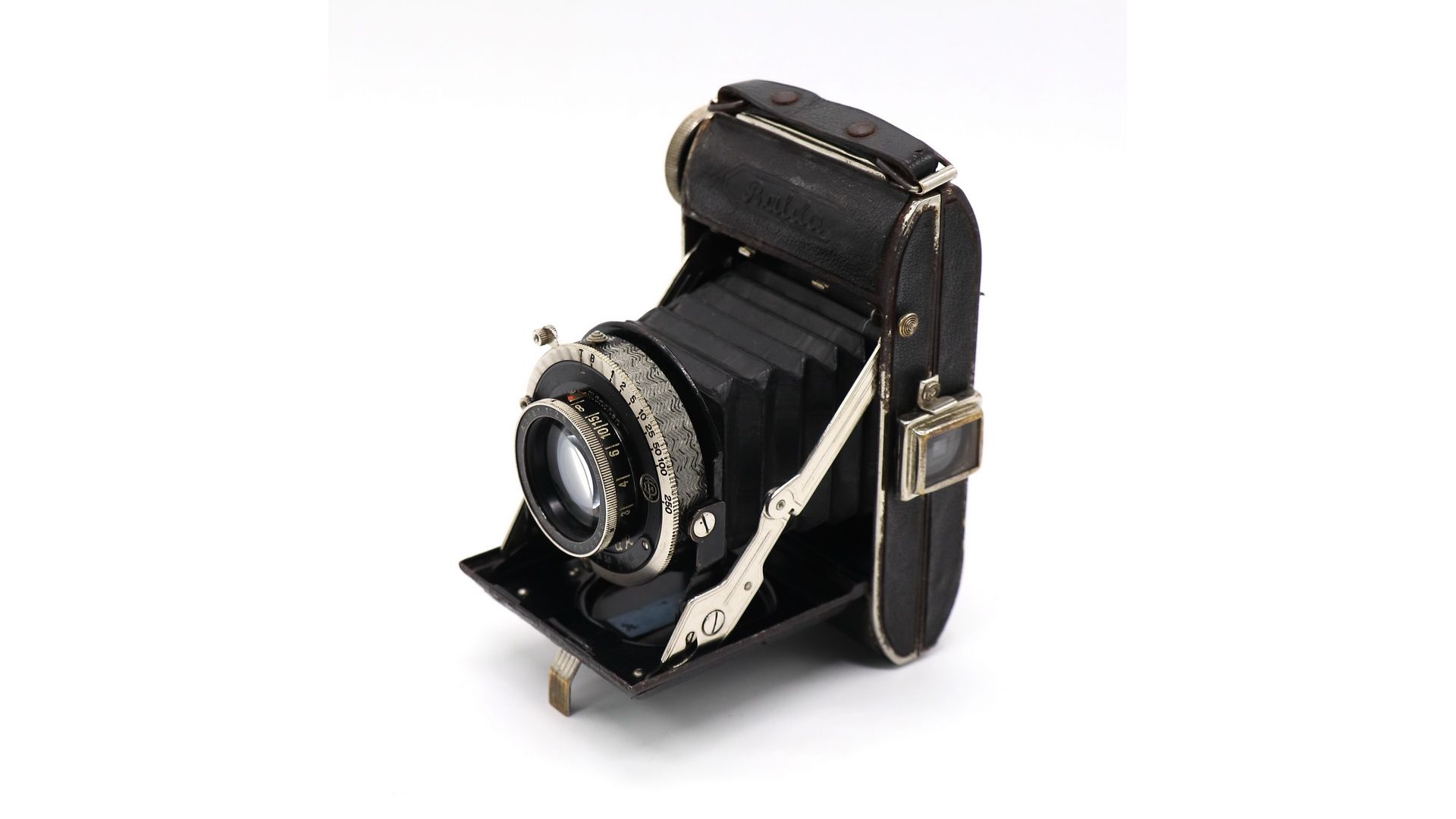Довоенный Baldax выпускался в течение 1930-х годов. Все камеры Baldax имеют прочные диагональные стойки характерной формы, более широкие у основания. Устройство обтянуто черным кожзаменителем. Данный экземпляр укомплектован объективом Xenar 2.8/75mm.