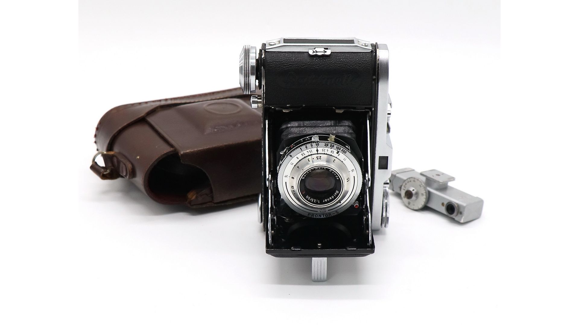 Его ксеноновый объектив 50 мм f / 2 поставляется легендарной оптической компанией Schneider-Kreuznach и соединен с затвором со скоростью от одной до 1/500 секунды от известного производителя затворов F. Deckel. Блоки внешнего освещения можно синхронизировать с затвором через кабель и выбирать в зависимости от типа с помощью крошечного зеленого рычажка в нижней части оправы объектива. Крышка объектива как у многих складных камер оснащена ножкой-стойкой. То есть в некоторых случаях можно обойтись и без штатива.