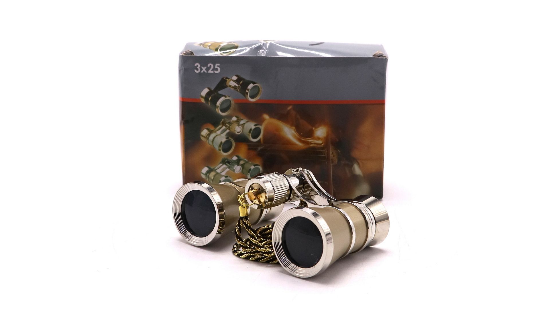 Бинокль театральный 3x25 золотистый в упаковке
