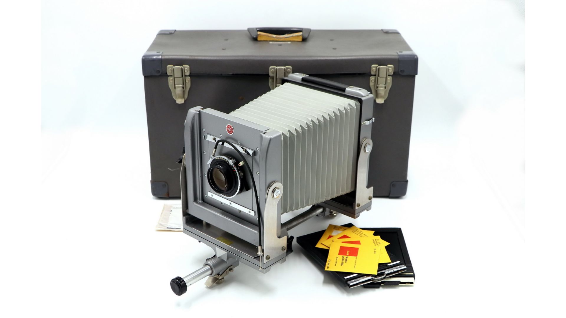 Универсальная, экономичная камера с полным обзором движения, может использоваться как в студии, так и за ее пределами. Камера Calumet предназначена для съемки пейзажей, архитектуры и студийной фотографии. Она отвечает самым требовательным практическим и творческим потребностям фотографа. Минимальное искажение изображения. Рельсы применяют для изменения масштаба снимаемого объекта с точной плавной регулировкой. Формат пленки - 4x5.