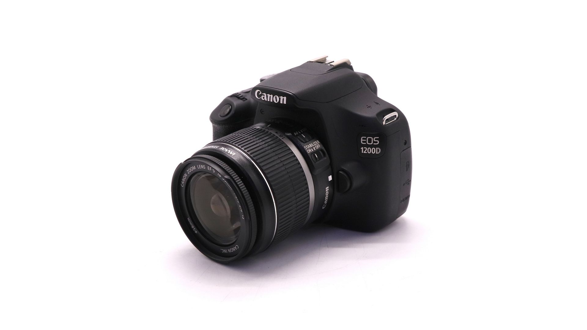Canon EOS 1200D - это полупрофессиональное решение в черном корпусе с тринадцатью оптическими элементами, оснащенное CMOS-матрицей (18 миллионов эффективных пикселей) с коэффициентом кроп-фактора, равным 1.6. Таким образом, Вы получаете качественный снимок (5184x3456 пикселей) и Full-HD-видео. При этом ISO варьируется от 100 до 12800 единиц. Стоит отметить оптимальное фокусное расстояние (от 18 до 55 миллиметров), высокую скорость работы (три кадра в секунду), а также поддержку RAW-формата. Предусмотрена автофокусировка, трехдюймовый LCD-дисплей, зеркальный TTL-видоискатель и встроенная вспышка. Из интерфейсов – аналоговый выход, HDMI- и USB-интерфейс.
