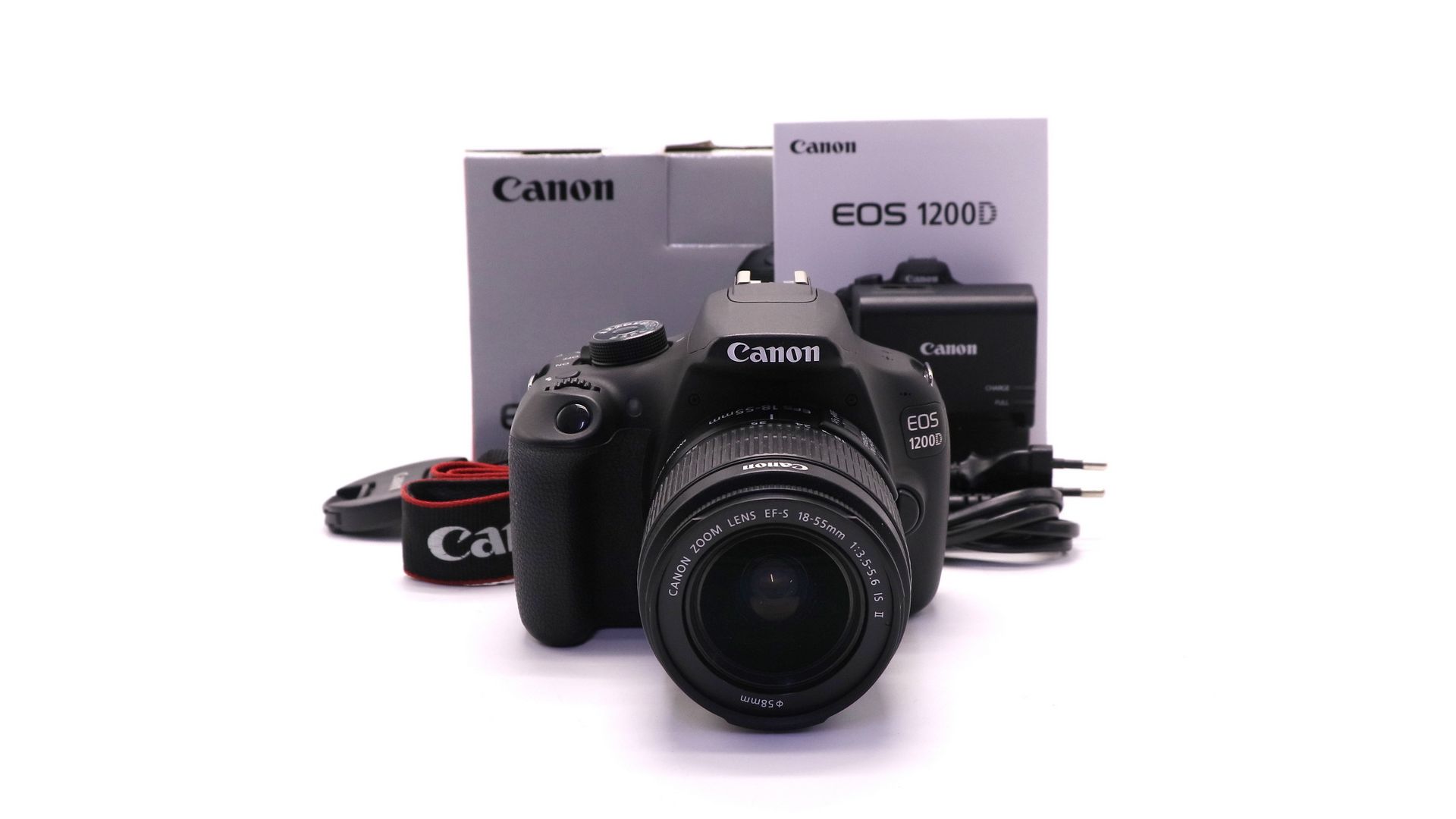 Комплектация:Объектив Canon 18-55mm f/3.5-5.6 IS II, крышка объектива, аккумулятор, ремень, зарядное устройство, коробка, документы.