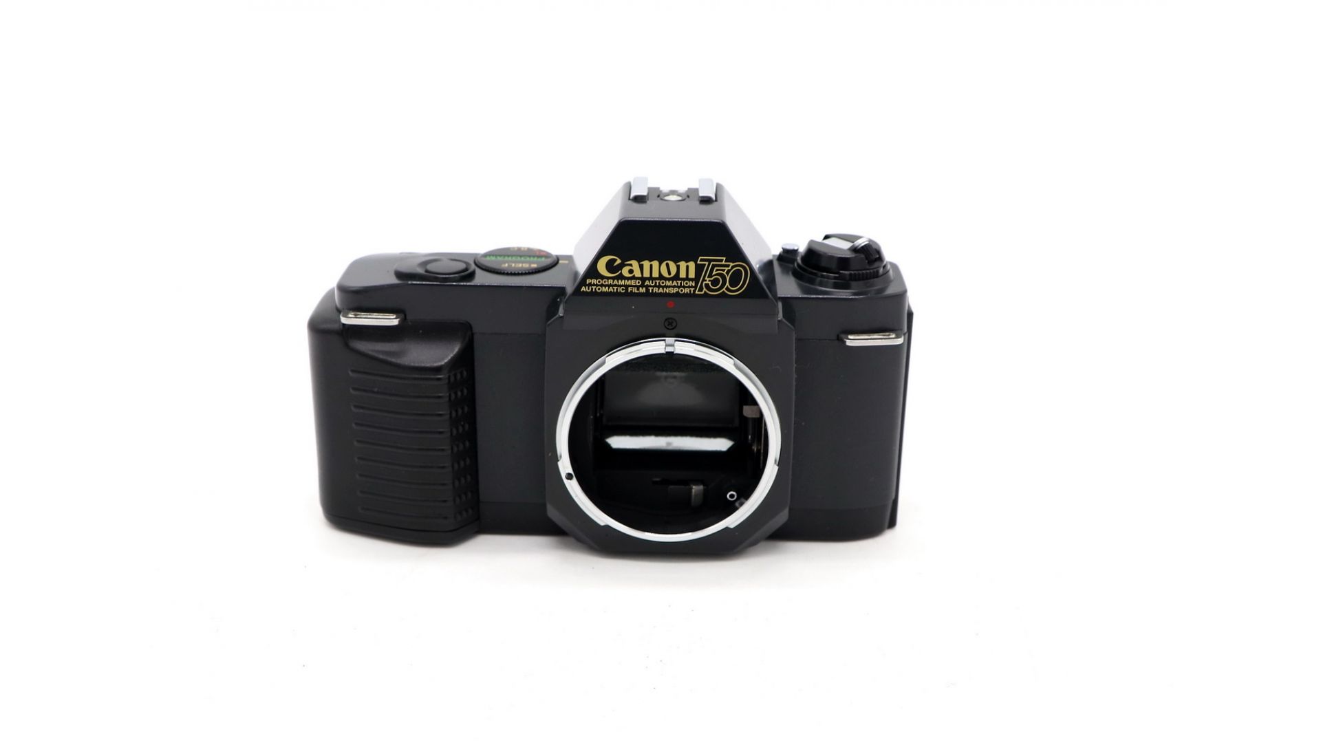 Серия Canon T была создана компанией чтобы сделать зеркальные фотоаппараты более популярными. Поскольку в начале 1980-х всё большее распространение получали 35-мм автоматические компактные камеры, Canon предприняла попытку разработать такую зеркальную камеру, которая была бы также проста в использовании, как и компактная камера, но обладала всеми преимуществами SLR-фотоаппарата. T50 имеет мотор для протяжки пленки, обеспечивающий скорость съемки 1,4 кадров в секунду, а также расширенный режим автоматической экспозиции. Питание - 2 элемента типа АА.