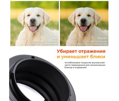 2) переходник для фотоаппарата с наличием линзы и без;