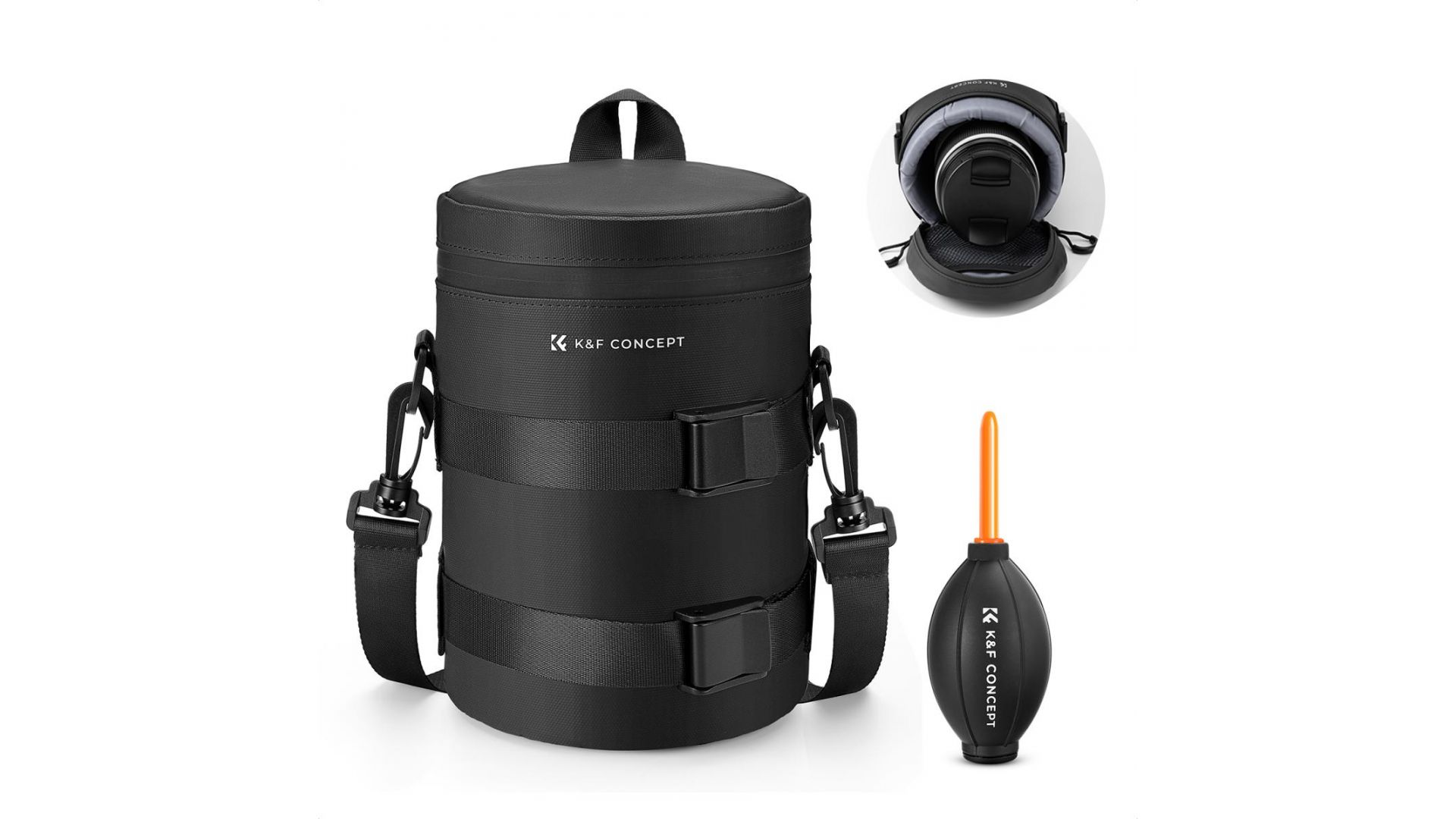 Чехол для объектива KF13.202 изготовлен из универсальной подкладки толщиной 10 мм, которая после испытания на падение стекла может эффективно предотвратить удары и падение, а также обеспечить сохранность объектива.