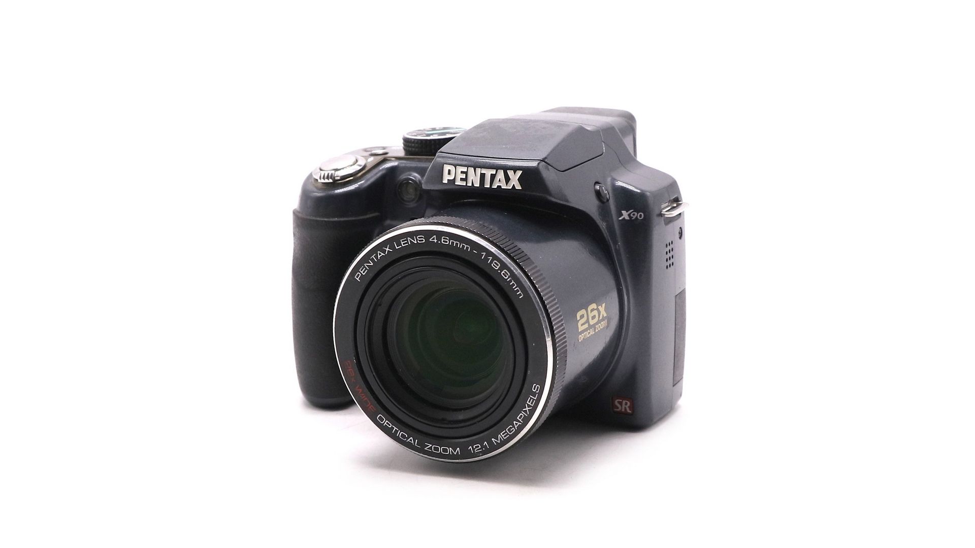 Pentax Optio X90 — это цифровой фотоаппарат класса ультразум, который отличается мощным 26-кратным оптическим зумом при относительно компактном корпусе. Камера позиционируется как удобное решение для тех, кто ищет широкие возможности съемки без необходимости покупки тяжелой зеркальной камеры и сменных объективов. Разрешение матрицы 12 мегапикселей. Фокусное расстояние 26–676 мм в 35-мм эквиваленте, что обеспечивает универсальность от широкоугольной до супертелефотосъемки. Оптический сдвиг матрицы (Sensor-shift Shake Reduction) для минимизации размытия. Запись HD-видео в разрешении 720p (1280x720) при 30 кадрах в секунду. Pentax Optio X90 хороший выбор для новичков, ищущих функциональность, близкую к зеркальным камерам, но в более простом и легком исполнении.