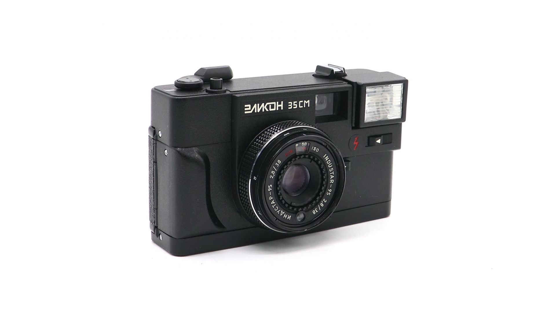 При установленном автоматическом режиме затвор отрабатывает выдержки от 1/500 до 1/8 с. и диафрагмы от 1:2,8 до 1:16. Камера в ручном режиме всегда отрабатывает выдержку 1/125, и имеет возможность установить диафрагму от 1:4 до 1:11. Фотоаппарат шкальный – фокусировка по символам на объективе от 1 м (портрет) до бесконечности (пейзаж). Одно из главных достоинств аппарата – это, конечно же, встроенная вспышка. Заряжается вспышка около 10-15 секунд. Эликон очень удобный, интересный экземпляр, который подойдет для экспериментов и пробной работы с пленкой.