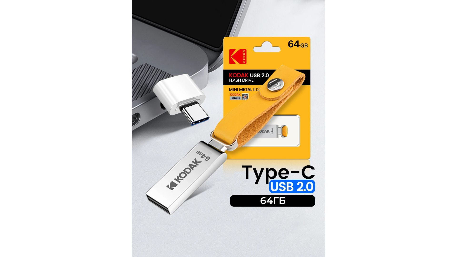 Флеш-накопитель KODAK K122 USB 2.0 + Type-C 64 ГБ