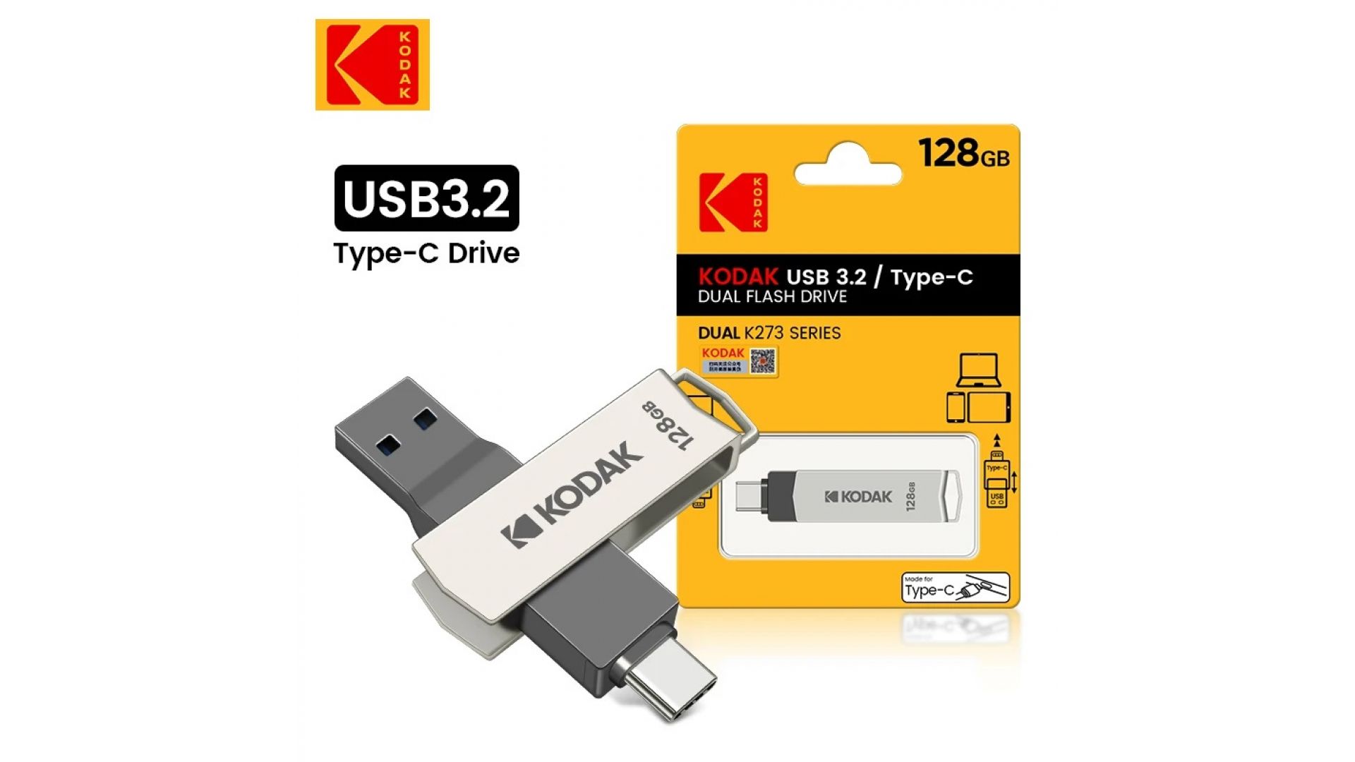 Флеш накопитель KODAK K273 Type-C + USB 3.2 (128 ГБ)