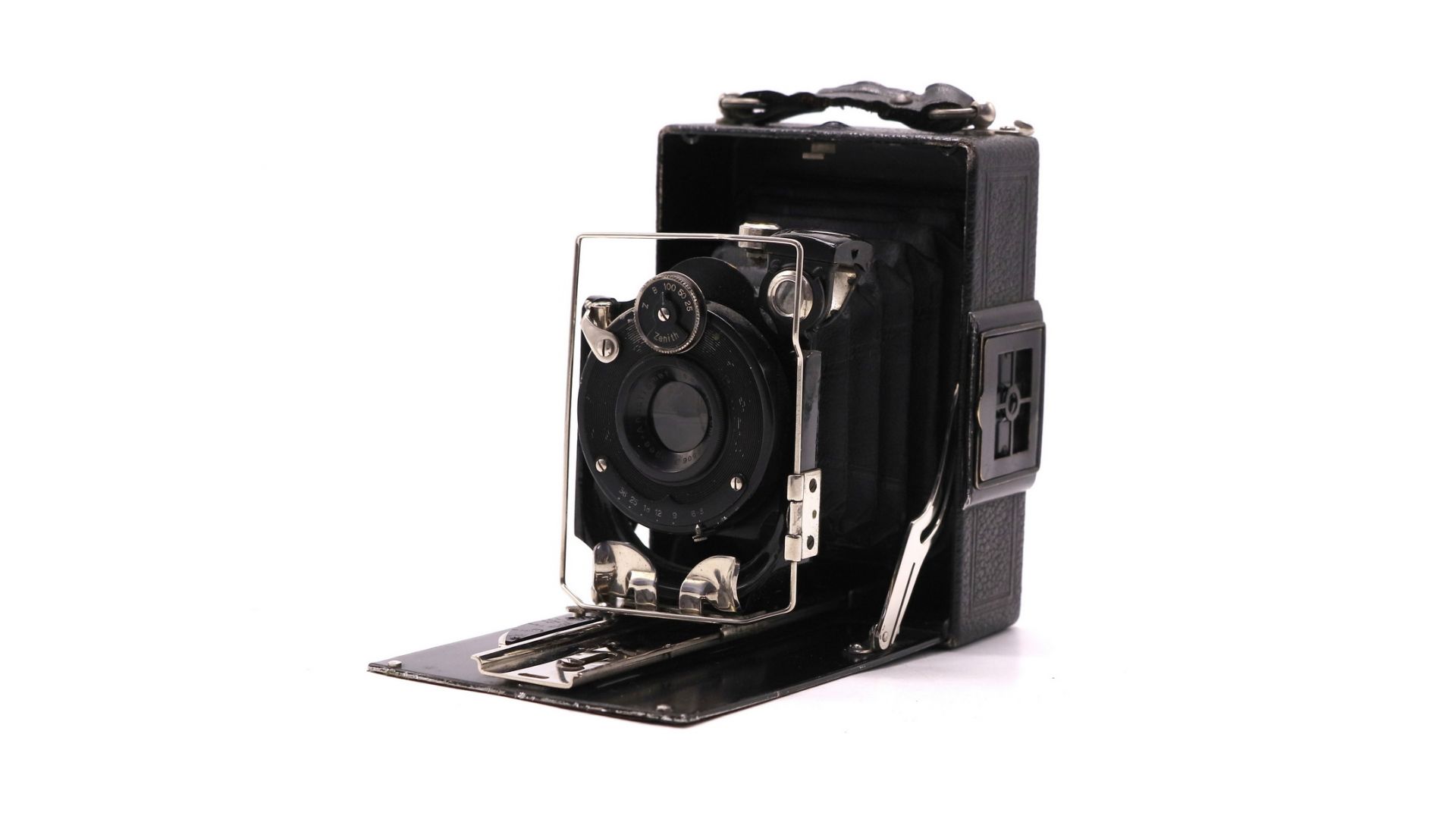 Классическая складная среднеформатная камера с объективом Jhagee-Anastigmat 6.3/105 мм. Полностью механический прибор для плёнки типа 120 с крупным форматом кадра 6×9 см.