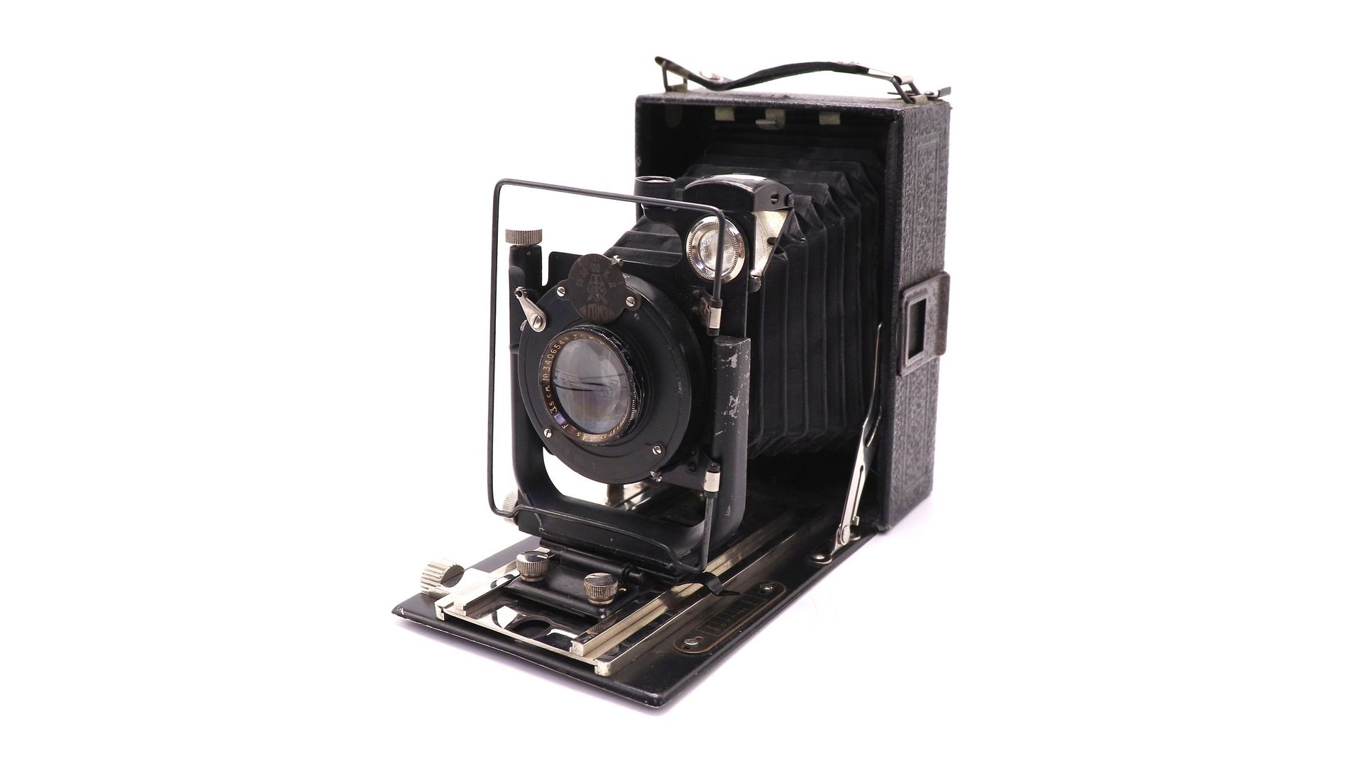 Фотоаппарат представляет собой универсальную прямоугольную камеру формата 9×12см с откладной передней стенкой и двойным растяжением меха. Мех камеры — пирамидальный. Данный экземпляр укомплектован объективом «Анастигмат „Ортагоз“» f4,5/135 мм типа четырехлинзовый несклеенный анастигмат. Затвор камеры - центральный, межлинзовый, без предварительного взвода с выдержками 1/25, 1/50 и 1/100 секунды, а также «К» и «Д». Система наводки камеры на резкость — по матовому стеклу на задней стенке корпуса, а также по шкале расстояний. Фотоаппарат имеет два видоискателя — поворотный зеркальный и рамочный. Фотоматериалом служат стеклянные фотопластинки формата 9×12.