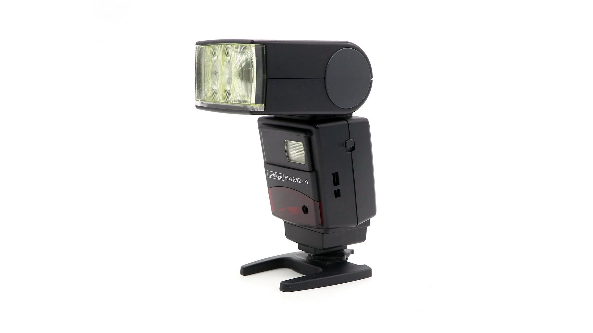 Ведущее число вспышки составляет 54 метра. Metz mecablitz 54 MZ-4 имеет автоматический и ручной зум. Угол поворота вверх:90°. Угол поворота вниз: 7°. Режимы:TTL, D-TTL. Вспышка поддерживает ручную регулировку мощности. Количество элементов питания 4 батареи типа АА.