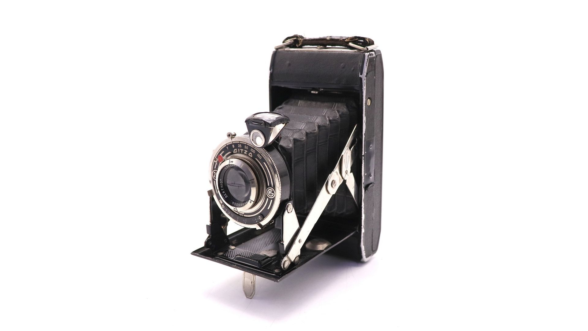 Редкая модель гармошечного типа с объективом Berthiot — известным французским производителем оптики