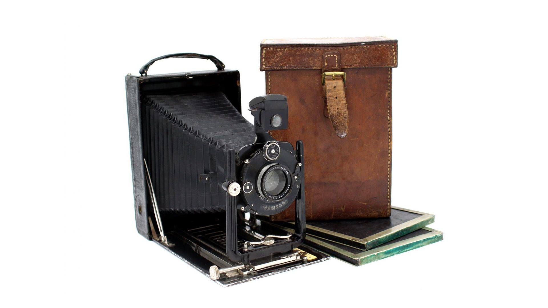Корпус камеры выполнен из алюминия. Сильфоны оснащена двойным удлинением. Вертикальная регулировка стойки и шестерни. Камера оснащена редким объективом Dagor 6.8/210mm в затворе Compur. Форматы кадра: 13x18 см.