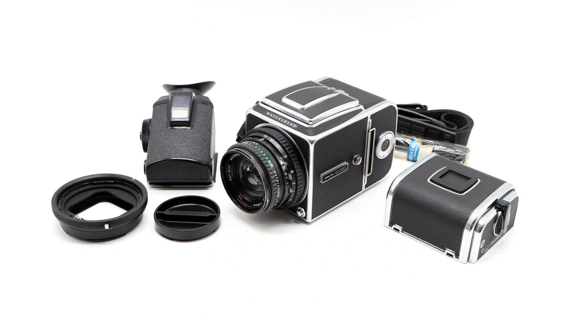 Камера оснащена сменным фокусирующим экраном, включая призматический видоискатель со встроенным экспонометром. Экземпляр оснащен объективом Planar 2.8/80 Carl Zeiss с антибликовым покрытием и внутренней светопоглощающей обработкой, оптика обеспечивает непревзойденные контрастность и цветовую насыщенность — превосходное качество. Hasselblad 500 C/M идеален для широкого спектра фотографических ситуаций и легко адаптируется в соответствии с меняющимися требованиями — он одинаково хорош и в студии, и на выезде.