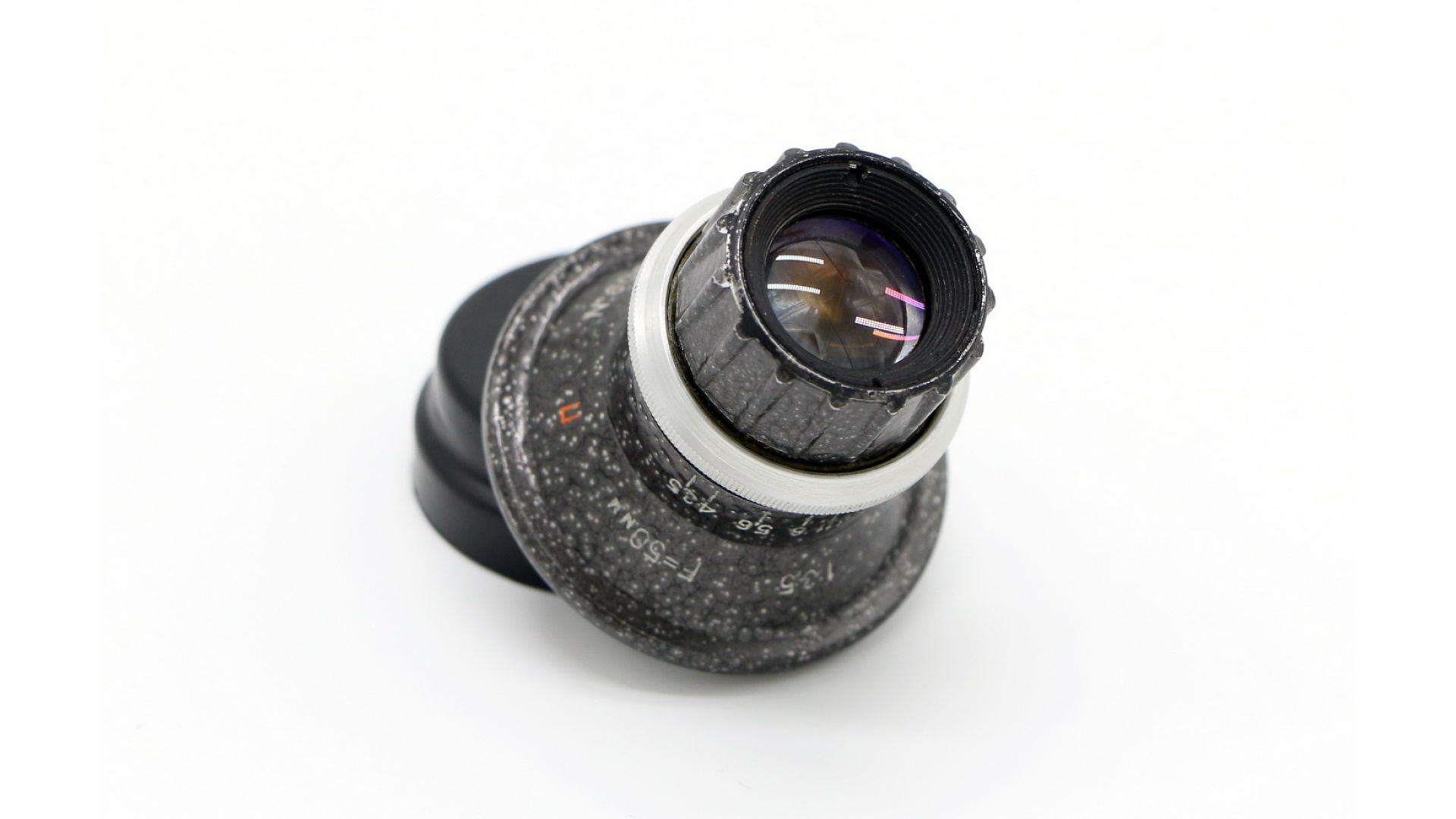 Объектив не обладает кольцом фокусировки. Фокусироваться удобно двигая камерой к предмету съемки или от него. Кольцо управления диафрагмой не имеет промежуточных фиксированных значений, вращается плавно, что позволяет установить любое значение числа F (F/3.5 до F/11). Оптическая схема - 4 элемента в 3 группах, схема Индустар/Тессар. Количество лепестков диафрагмы - 6 штук, лепестки не зачернены, блестят на солнце. Формируют достаточно правильное 6-ти угольное отверстие. И50У-1 П 3,5/50 очень резкий, так как служил для фотоувеличителей и должен был передавать мельчайшие детали. Отлично подходит для макро съемки.