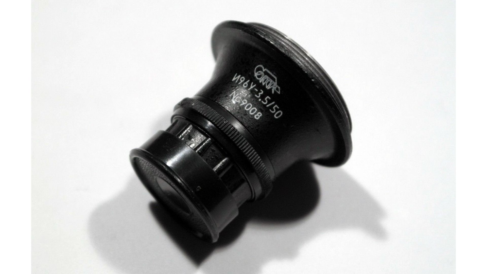 Диафрагма - 6 лепестков, лепестки не зачернены, блестят на солнце. Формируют достаточно правильное 6-ти угольное отверстие. Диапазон от F/3.5 до F/11. Кольцо управления диафрагмой не имеет промежуточных фиксированных значений, вращается плавно, что позволяет установить любое значение числа F из указанного диапазона. Оптическая схема - 4 элементов в 3 группах. Отличается своим миниатюрным размером (очень легкий и компактный). Так как данный экземпляр от фотоувеличителя, его хорошо использовать для макросъемки. И96У 3,5/50 прекрасный экземпляр по доступной цене.