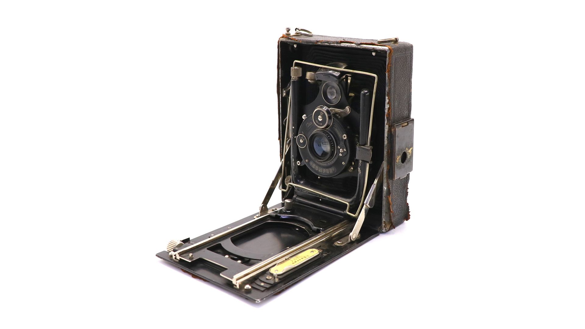 Присутствуют значительные дефекты, влияющие на работоспособность. Затвор неисправен. Отсутствует деталь миханизма рельс, из-за чего гармошка не до конца открывается. Мех потрескался и пропускает свет.