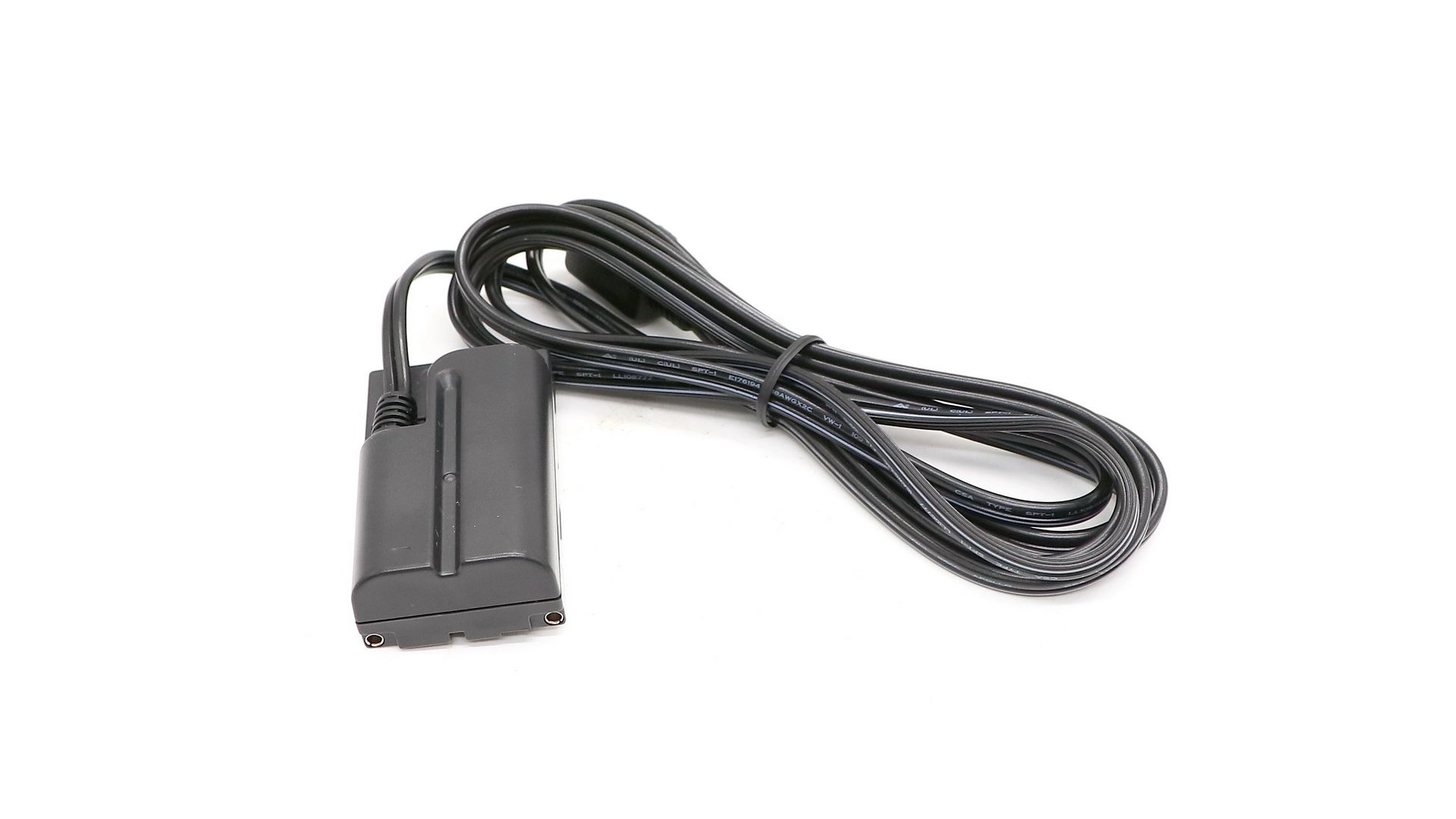Кабель для подключения видеокамер (для аккумуляторов видеокамер серии L, таких как NP-F970, NP-F960, NP-F950 и т. д.). Переходник используется вместе с совместимым адаптером, позволяющим напрямую подключать цифровую камеру от источника питания. Это предпочтительный способ питания камеры при съемке в студии, при съемке настольных продуктов или в любых других ситуациях, когда камера может потребовать включения на длительное время.