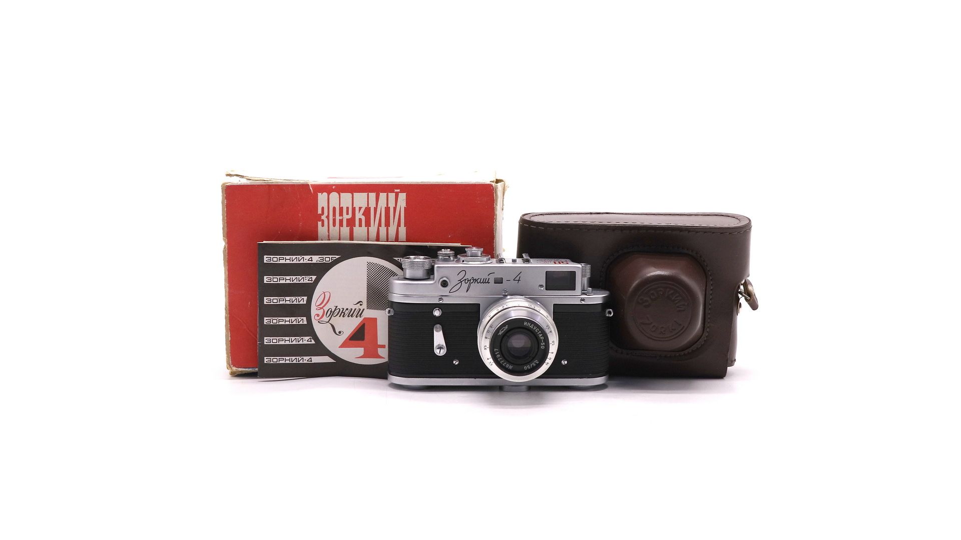 Комплектация:Коробка, документы, кофр, объектив Индустар-50.