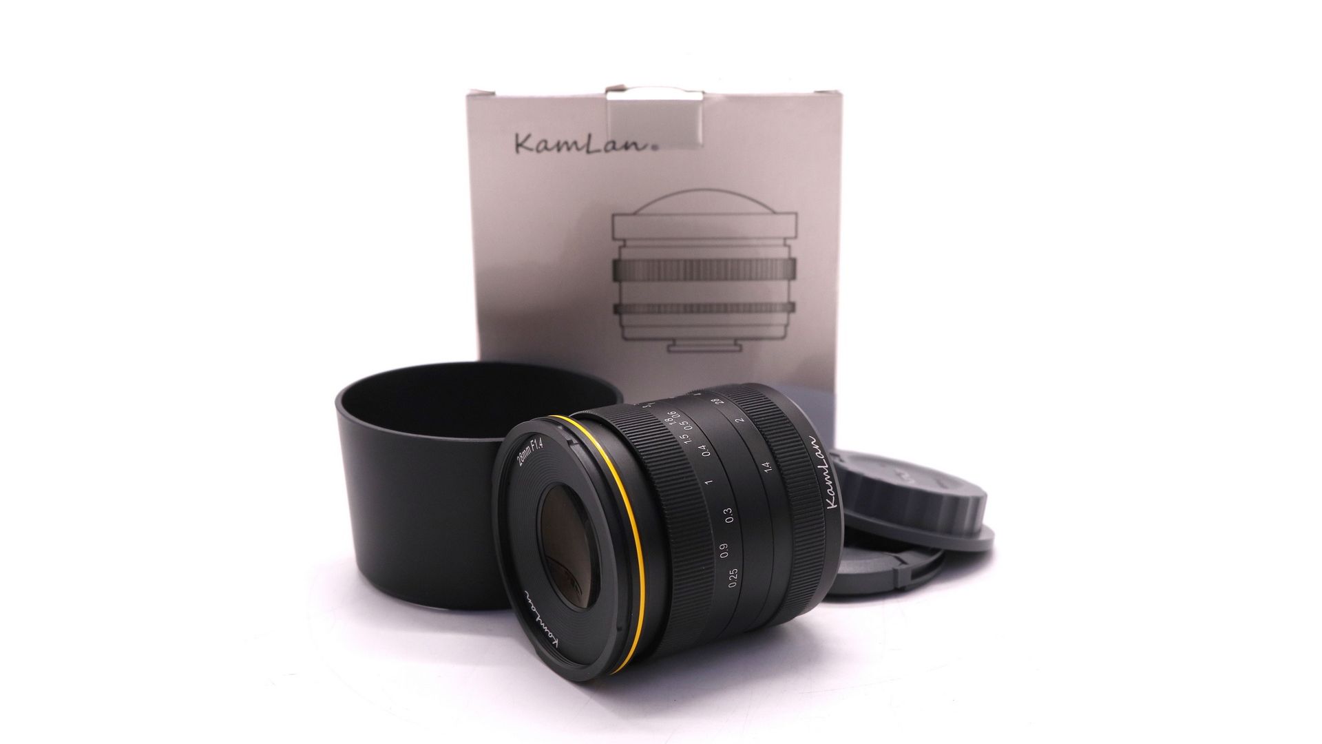 KamLan 28mm f/1.4 Micro 4/3 в упаковке