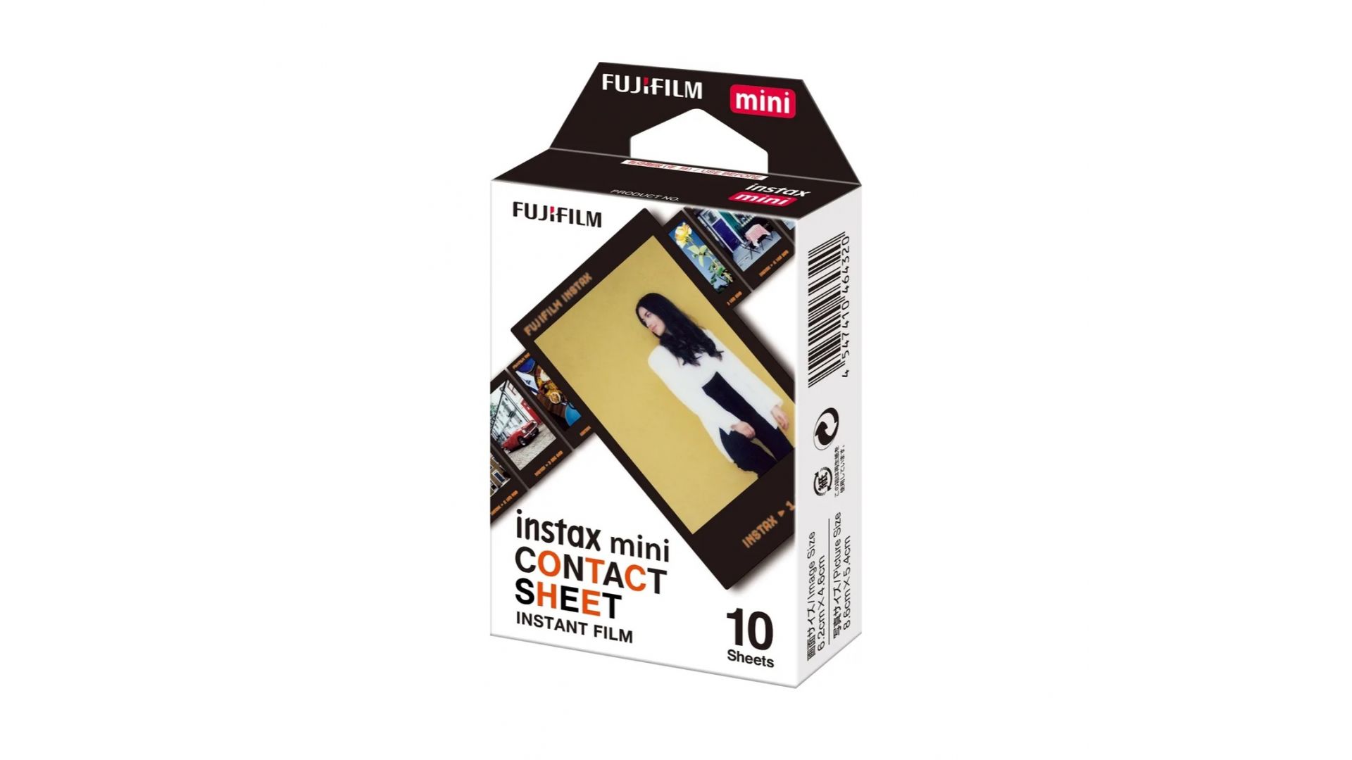 Картридж Fujifilm Instax Mini Contact Sheet — пленка на 10 снимков с уникальной чёрной рамкой и надписью «Fujifilm Instax», идеально подходящая для мгновенной печати ярких фотографий.