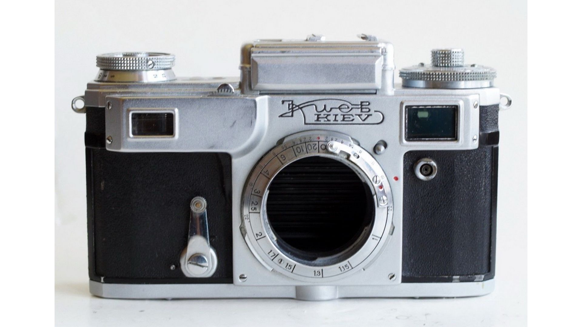 Затвор механический фокальный шторный. Имеется встроенный селеновый экспонометр. Выдержки затвора 1250-500-250-125-50-25-10-5-2 и "В". Имеется автоспуск. Задняя крышка съемная. Киев-4 - хороший ретро фотоаппарат, способный заткнуть за пояс бюджетные зеркальные фотоаппараты.
