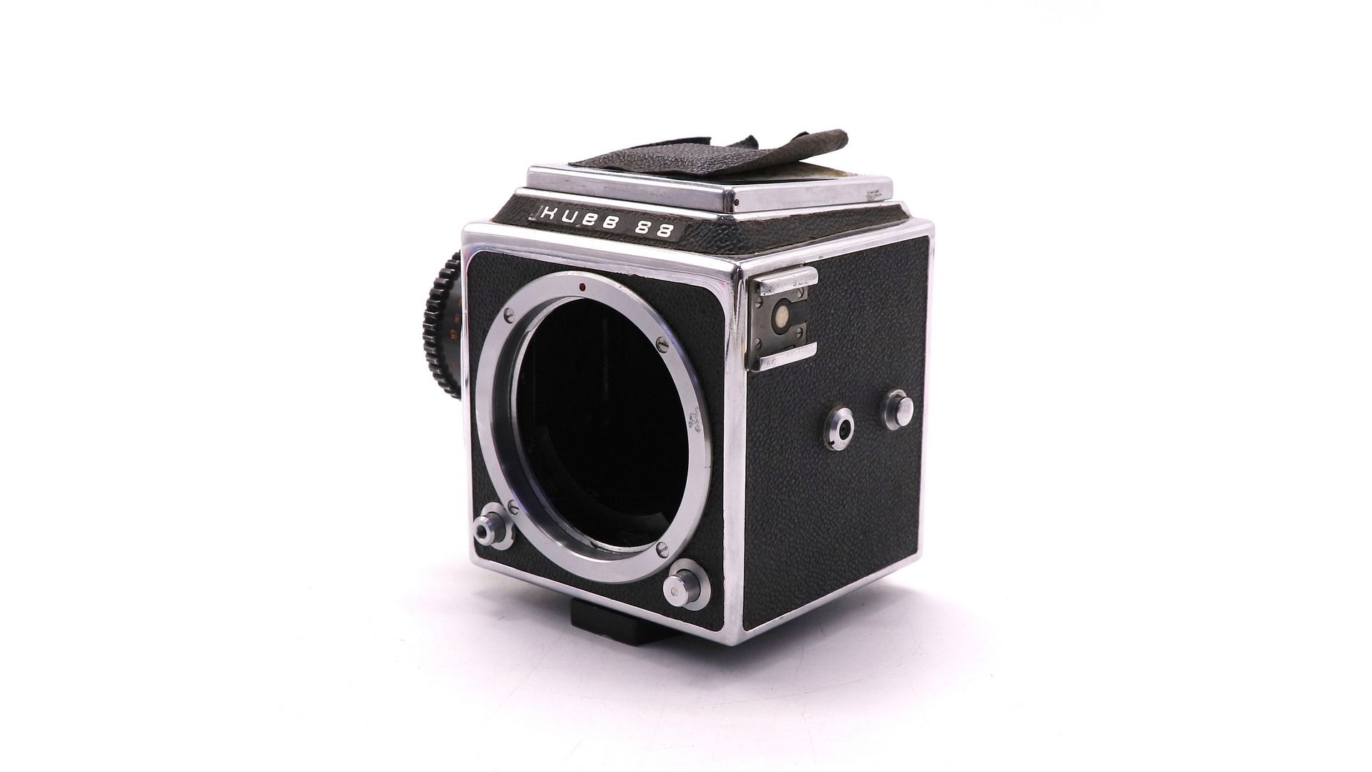 Затвор шторный фокальный с металлическими гофрированными шторками из нержавеющей стали с диапазоном выдержек от 1/2 до 1/1000 с и «В». Синхроконтакт «Х», центральный синхроконтакт. Выдержка синхронизации от 1/30 с и более. Тип применяемого фотоматериала — рольфильм. Размер кадра 6×6 см, на плёнке типа 120 получается 12 кадров.