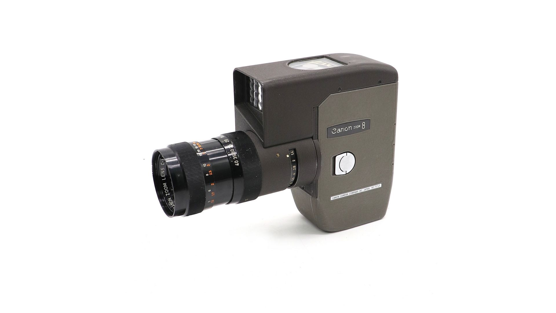 Хотя эта камера была основана на 8-T, у нее был однообъективный зеркальный видоискатель с дальномером с разделенным изображением и электрическим экспонометром. Это была первая кинокамера Canon, оснащенная зум-объективом, и она стала очень популярной. Более того, это был первый зум-объектив с эпохальным 4-кратным увеличением и самым быстрым на то время разрешением объектива f / 1.4. Этот объектив был разработан доктором Кейзо Ямадзи, который позже стал президентом Canon Inc., и поэтому такая конструкция объектива получила название “тип Ямадзи”. Он стал самым популярным типом зум-объектива для кинокамер. У него также была съемная рукоятка для запуска.