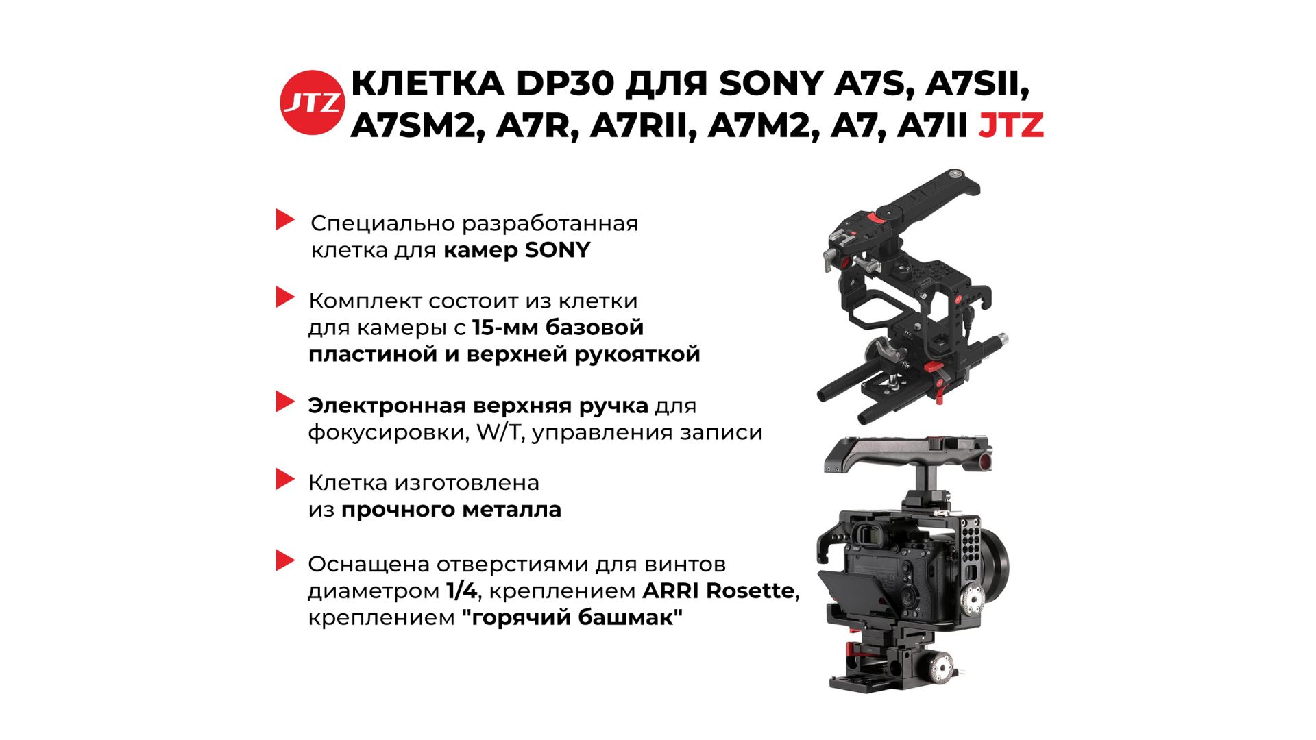 Клетка JTZ DP30 для SONY A7S, A7SII, A7SM2, A7R, A7RII, A7M2, A7, A7II