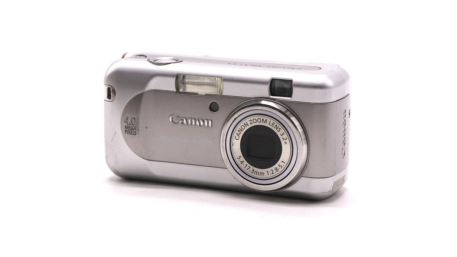 Компактный фотоаппарат Canon PowerShot A420 — цифровая «мыльница» начального уровня. Обладает 3.2-мегапиксельным сенсором, несъёмным 39-мм фикс-объективом с 3.2-кратным оптическим зумом (f/2.8-5.1) и 1.8-дюймовым ЖК-экраном.