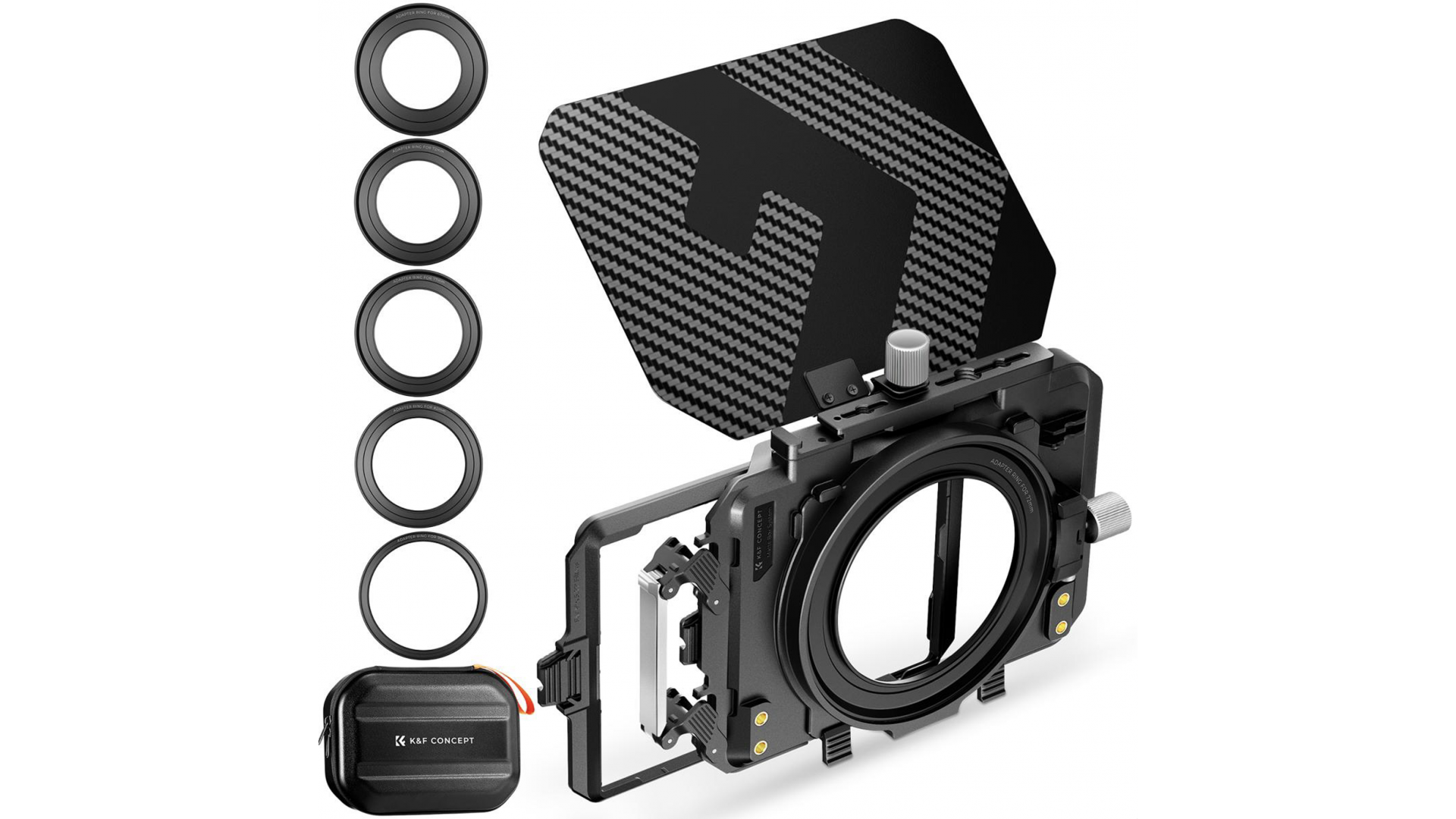 Универсальная система фильтров: устанавливайте два стандартных фильтра 4x5.65" одновременно. В комплекте — 5 переходных колец (67–95 мм) для совместимости с большинством зеркальных и беззеркальных камер. Продуманные порты расширения (1/4", 3/8", Cold Shoe) позволяют крепить мониторы или микрофоны.