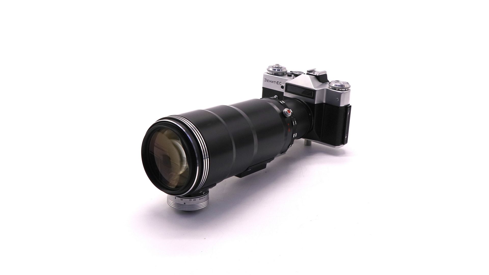 Культовый советский фотоснайпер, один из самых узнаваемых и редких комплектов системы "Зенит". Представляет интерес не только как инструмент, но и как объект коллекционирования — особенно в полном оригинальном комплекте.