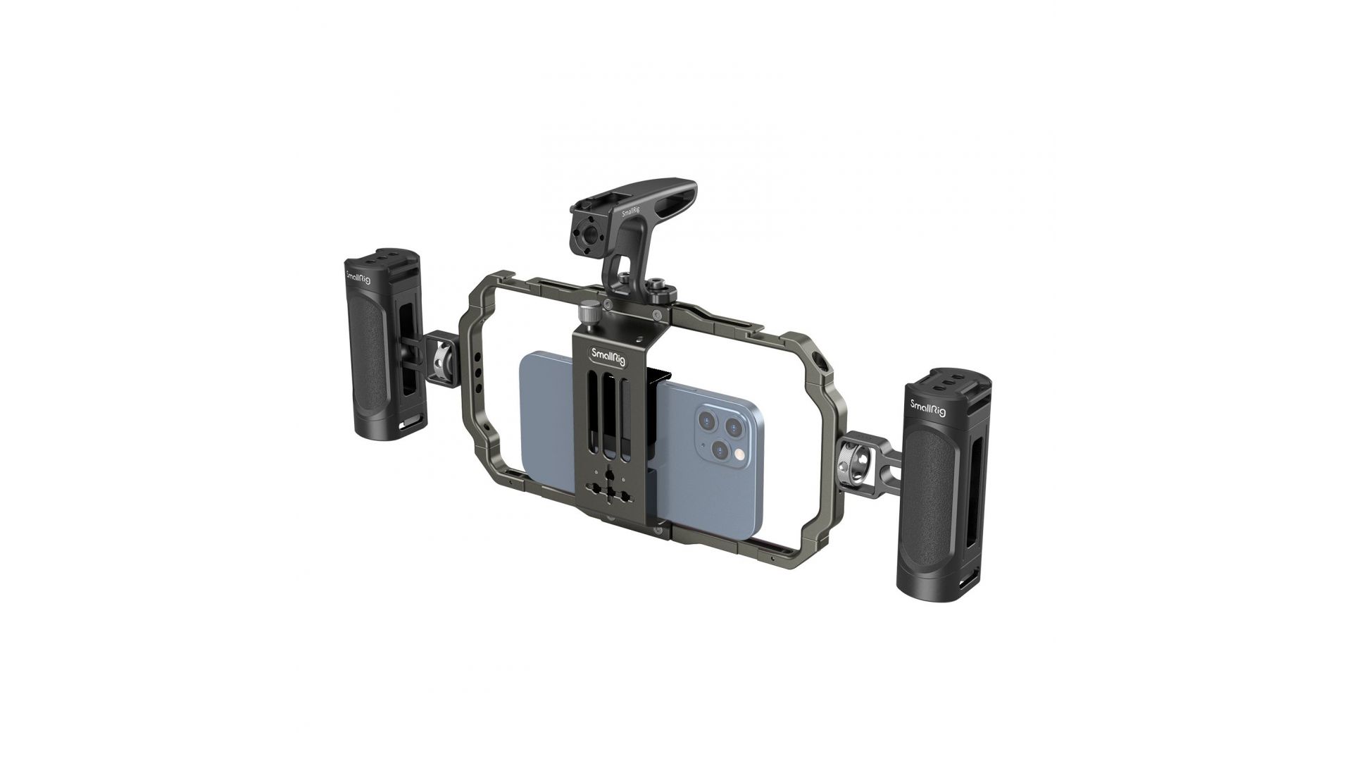 SmallRig 3155B — универсальный комплект для съемки со смартфона, созданный для мобильного кинопроизводства, видеоблогинга и рекламных проектов. Совместим с большинством моделей телефонов. В комплект входят две боковые и одна верхняя ручка для удобного хвата и стабильной съемки. Оснащён двумя креплениями "холодный башмак" и множеством резьб 1/4 дюйма для подключения микрофонов, светильников, штативов и других аксессуаров. Прочная конструкция и широкая совместимость делают этот комплект идеальным решением для мобильных создателей контента.