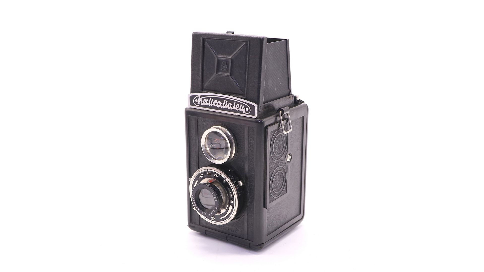 Советский среднеформатный двухобъективный зеркальный фотоаппарат Комсомолец. Произведен на Государственном оптико-механическом заводе в 1948 году.