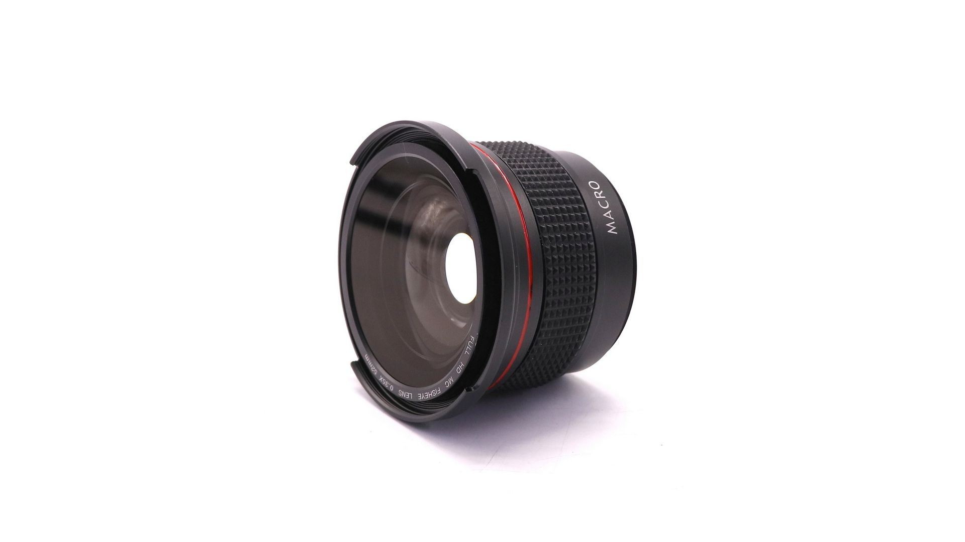 Увеличение 0.35× обеспечивает яркий фишай-эффект с широкой диагональной поля (≈180° при установке на 52 мм объектив).