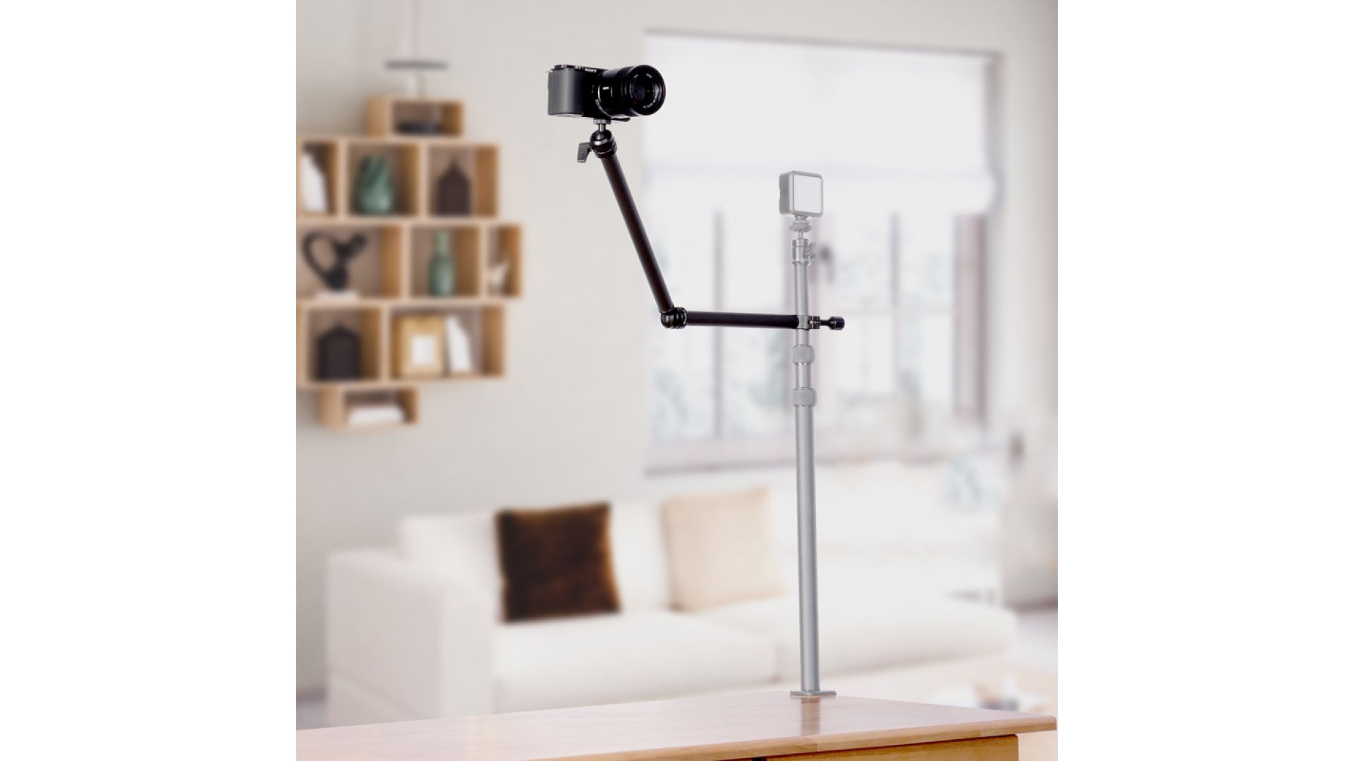 Конструкция из прочного алюминия сочетает лёгкость и надёжность. Идеален для создания компактных рабочих setups. Подходит для видеоблогеров, фотографов и специалистов по видеосъёмке.