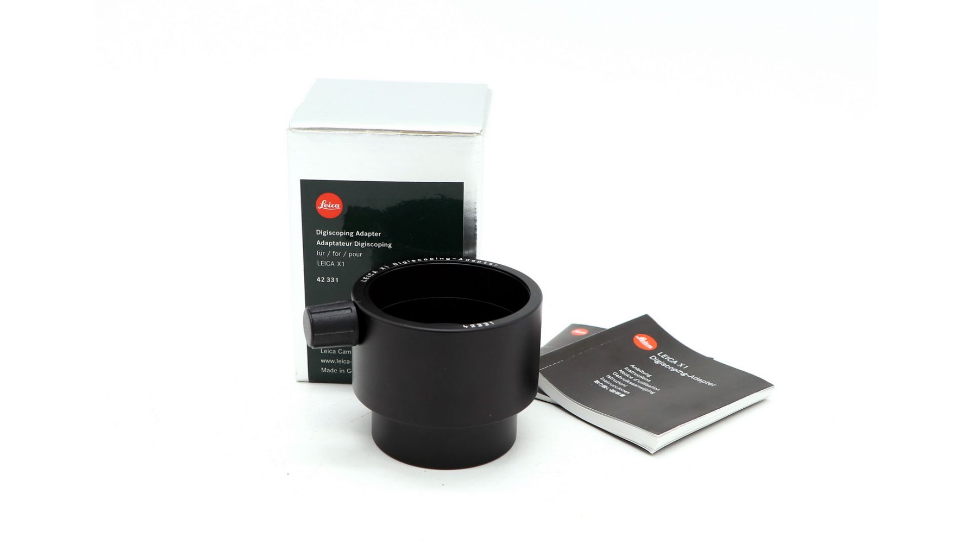 Переходник с подзорной трубы Leica на Leica X1. Адаптер выравнивает объектив по изображению из прицела, обеспечивая резкое изображение удаленных объектов, сцен и живой природы.