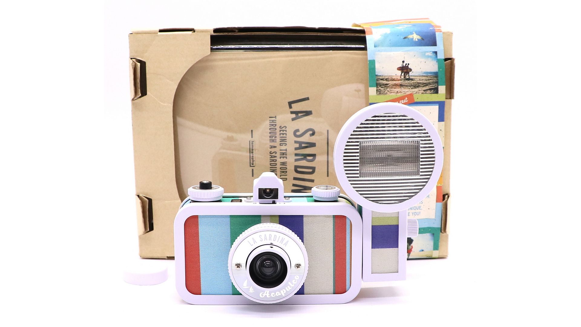 35-мм камера с широкоугольным объективом, выполненная в форме банки сардин. Камера оснащена мощной вспышкой Fritz the Blitz, с возможностью трёхкратного изменения силы импульса. На La Sardina, благодаря удобной системе перемотки плёнки “вперёд-назад”, можно легко и просто делать мультиэкспозицию: можно в любой момент не дожидаясь конца плёнки перемотать один или несколько кадров назад, и сфотографировать второй слой. Угол обзора: 89 градусов. Выдержка: 1/100 (N), ручная (B). Автоматический счётчик кадров
