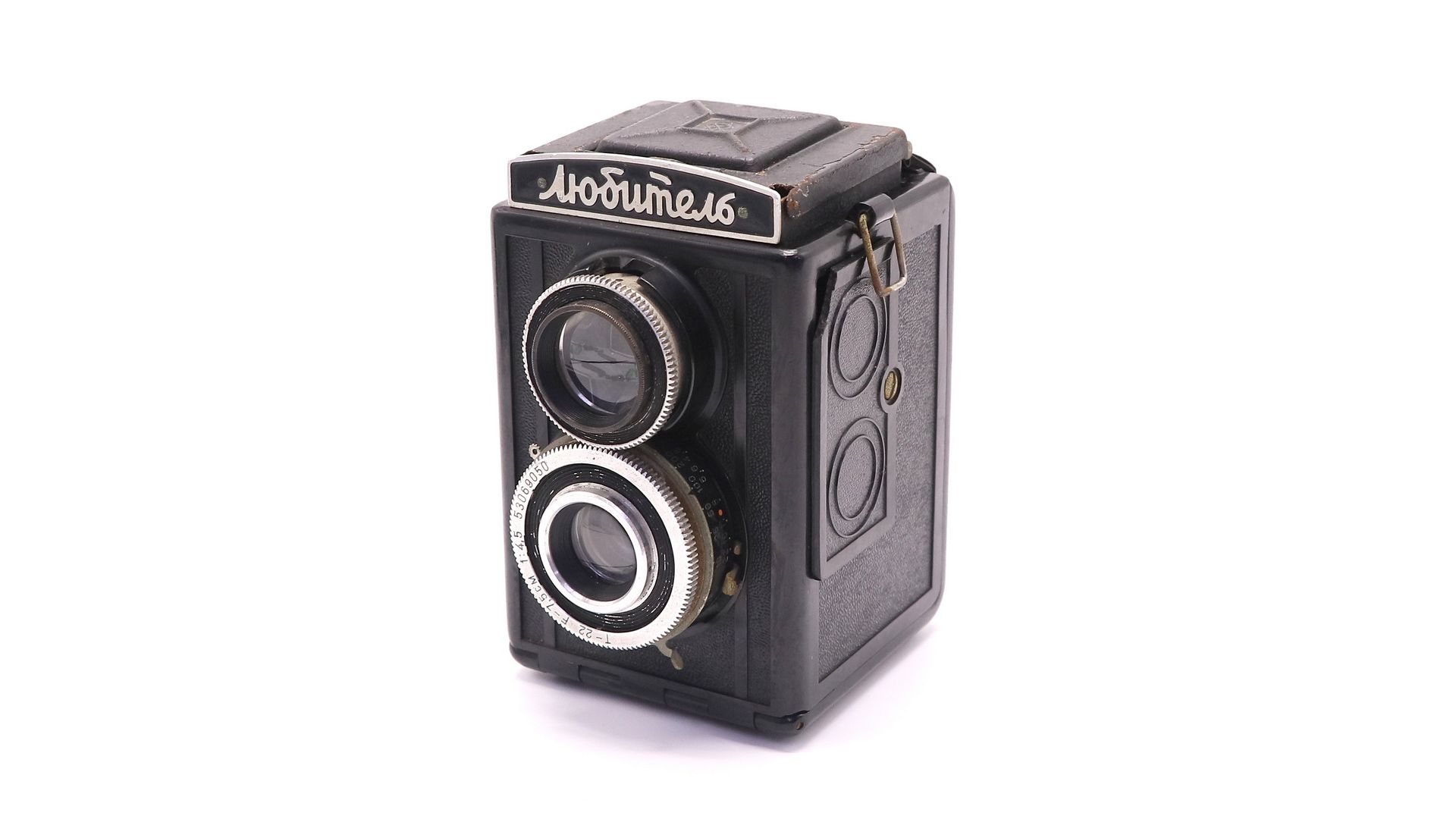 Съёмочный объектив «Т-22» 4,5/75, просветлённый. Резьба для светофильтров — 40,5×0,5 мм. Диапазон применяемых диафрагм — от f/4,5 до f/22. Фотоматериал - пленка типа 120, размер кадра 6×6 см.