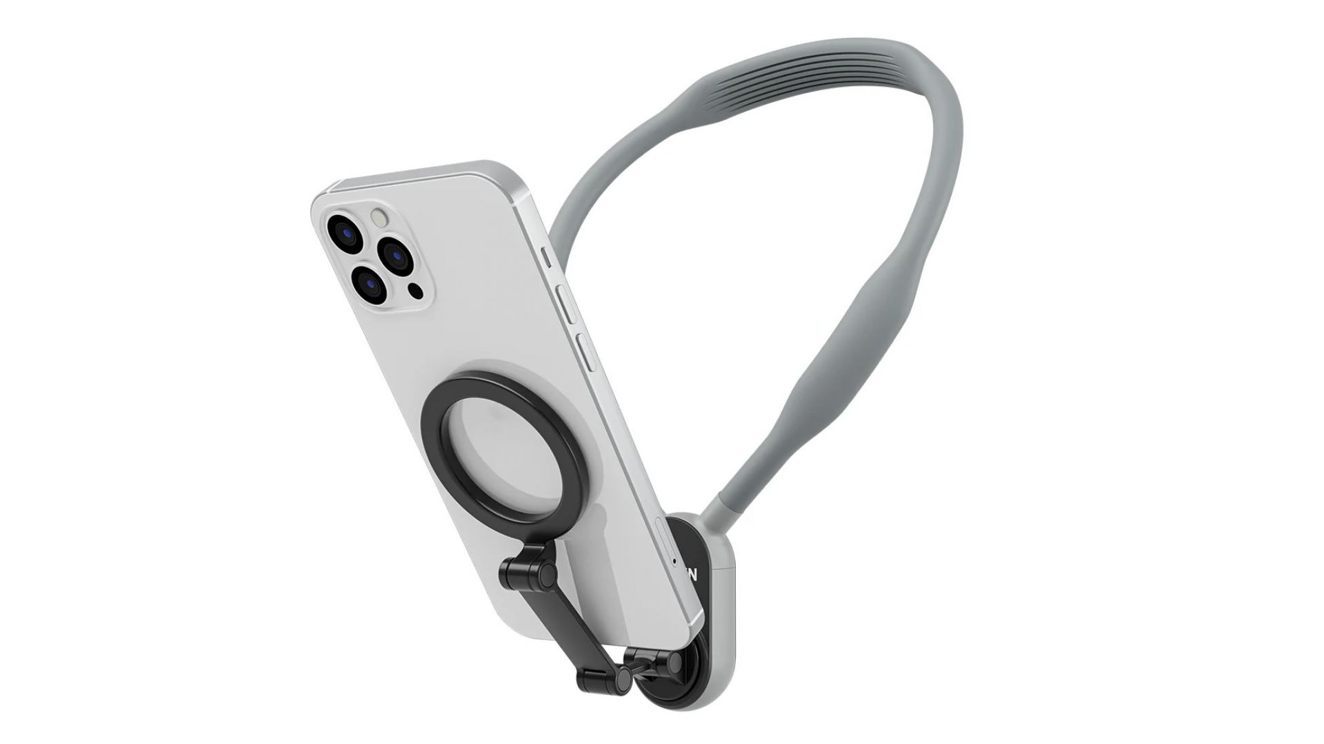 Снимайте видео без помощи рук от первого лица с помощью серого магнитного шейного крепления для смартфона от Telesin.