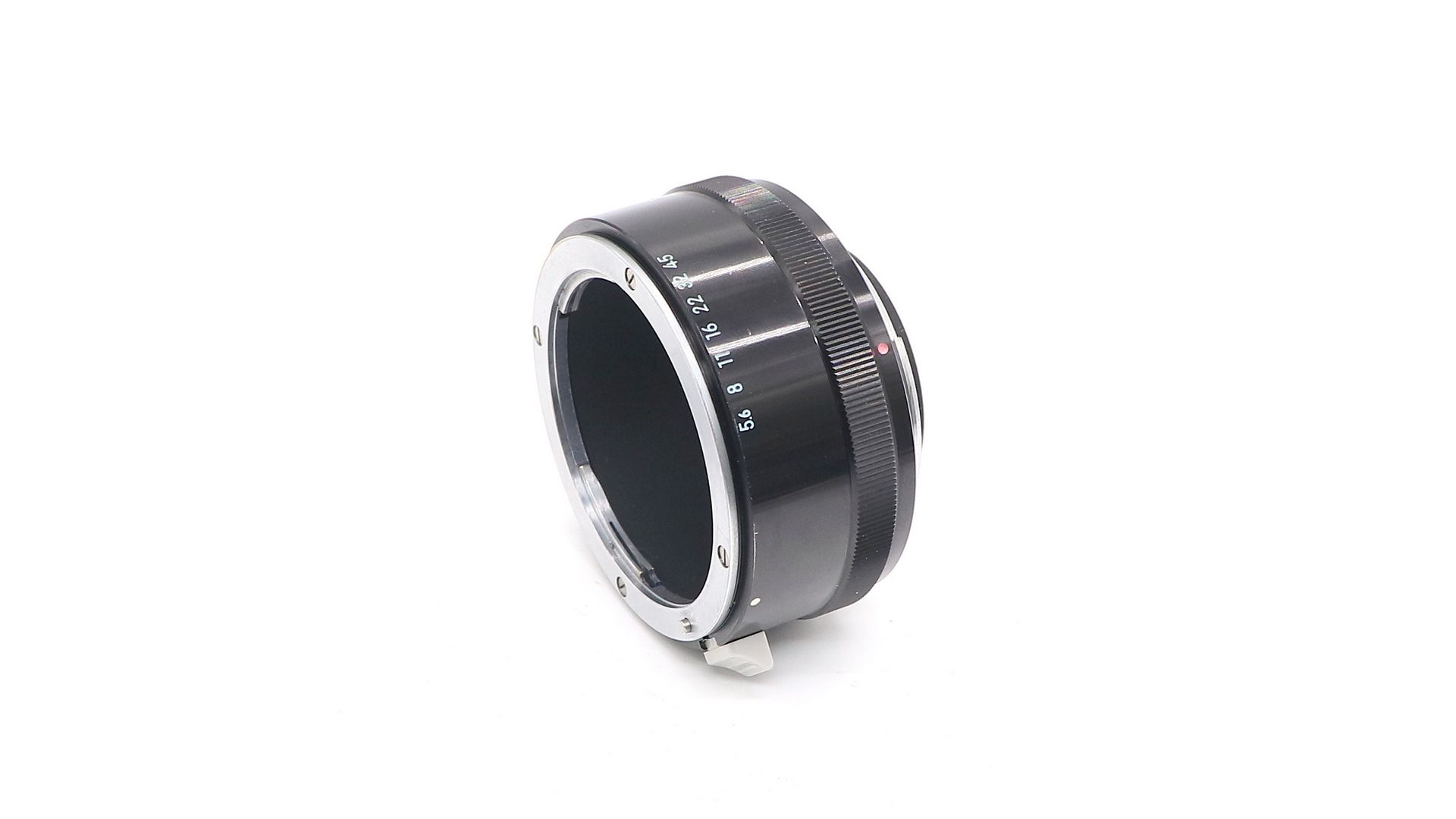 Обеспечивает удлинение на 27,5 мм и возможность точной фокусировки за счет некоторого пропускания света и фокусировки на бесконечность. Позволяет 55-миллиметровому объективу f3.5 Micro-Nikkor воспроизводить макросъемку 1:1. Эта более старая модель оснащена автоматической регулировкой диафрагмы, но не подключается к экспонометру. Корпус из черного металла.