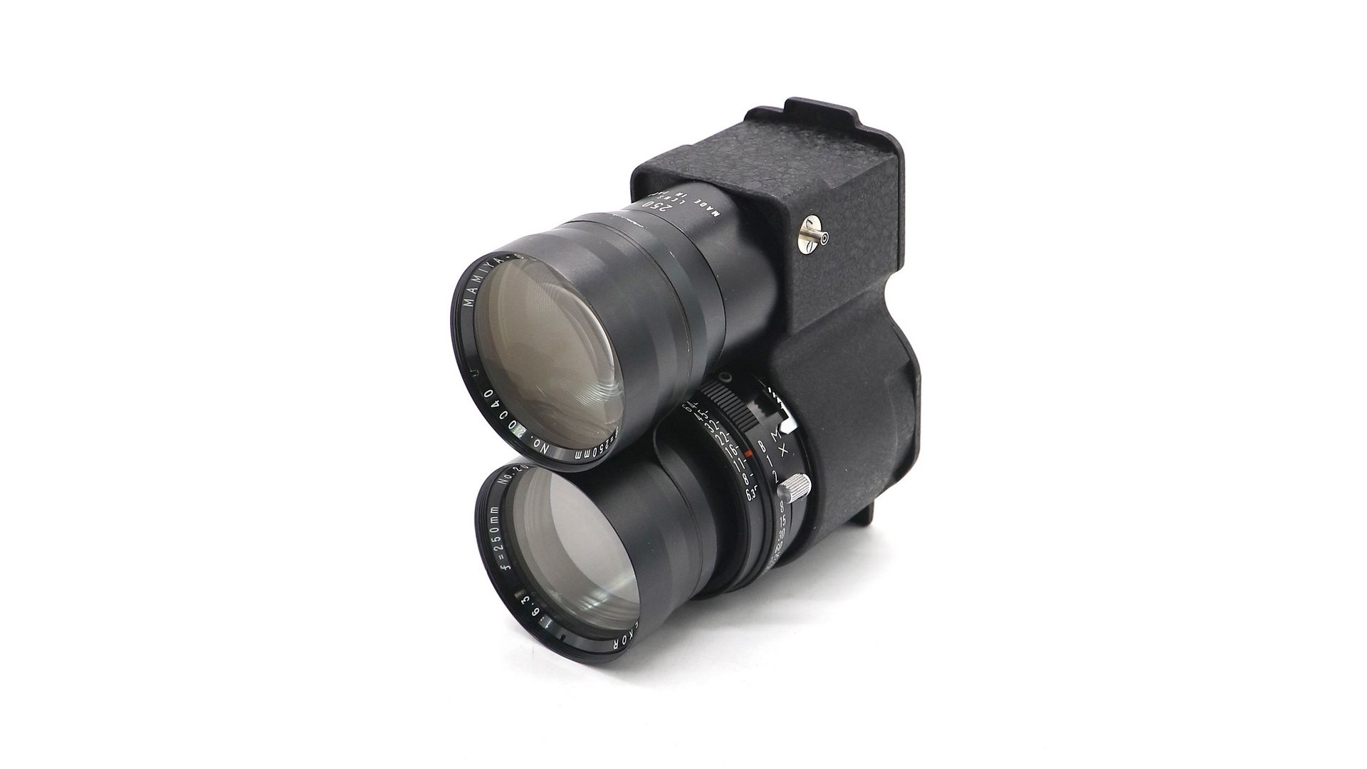 Mamiya-Sekor 250mm - объектив с постоянным фокусным расстоянием и со встроенным затвором для среднеформатных двухобъективных камер Mamiyaflex TLR.