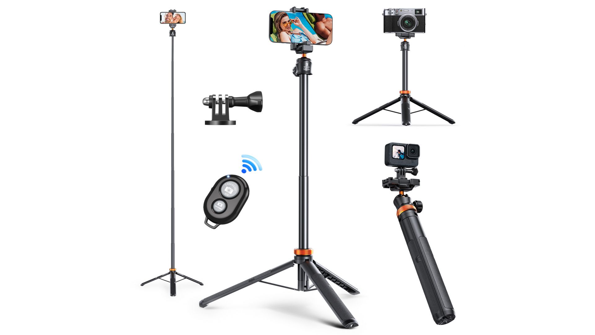 Оснащенный адаптером для GoPro, штатив может быть легко адаптирован для съемки с устройств GoPro, DJI Osmo Action и Insta 360. Сферическая головка может поворачиваться на 360° по горизонтали и наклоняться на 90° по вертикали, обеспечивая всесторонний охват съемки. Независимо от того, снимаете ли вы пейзажи, людей или спортивные сцены, вы можете легко выбрать нужный угол и поле зрения.