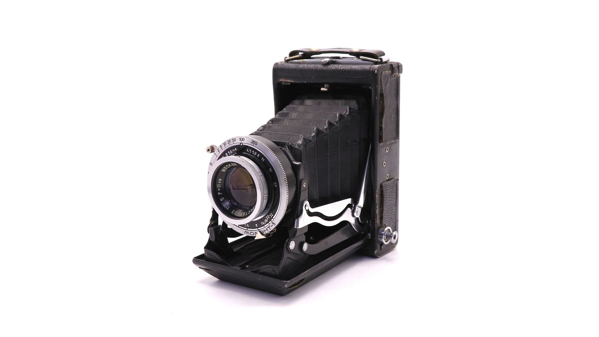 Камера создана на базе фотоаппаратов «Zeiss Super-Ikonta» немецкой фирмы Zeiss Ikon. Затвор центральный, «Момент-5». Выдержки от 1 с. до 1/250 секунды, «В» и «Д».. Диафрагма ирисовая, значения диафрагм 4,5, 5,6, 8, 11, 16, 22, 32. Объектив «Индустар-23», просветлённый, фокусное расстояние 110 мм, относительное отверстие 1:4,5, угол поля зрения объектива 52°. Наводка на резкость вращением передней линзы объектива, фокусировка по шкале расстояний от «бесконечности» до 1,5 метров. Тип применяемого фотоматериала — фотопластинки с размером кадра 6,5×9 см.
