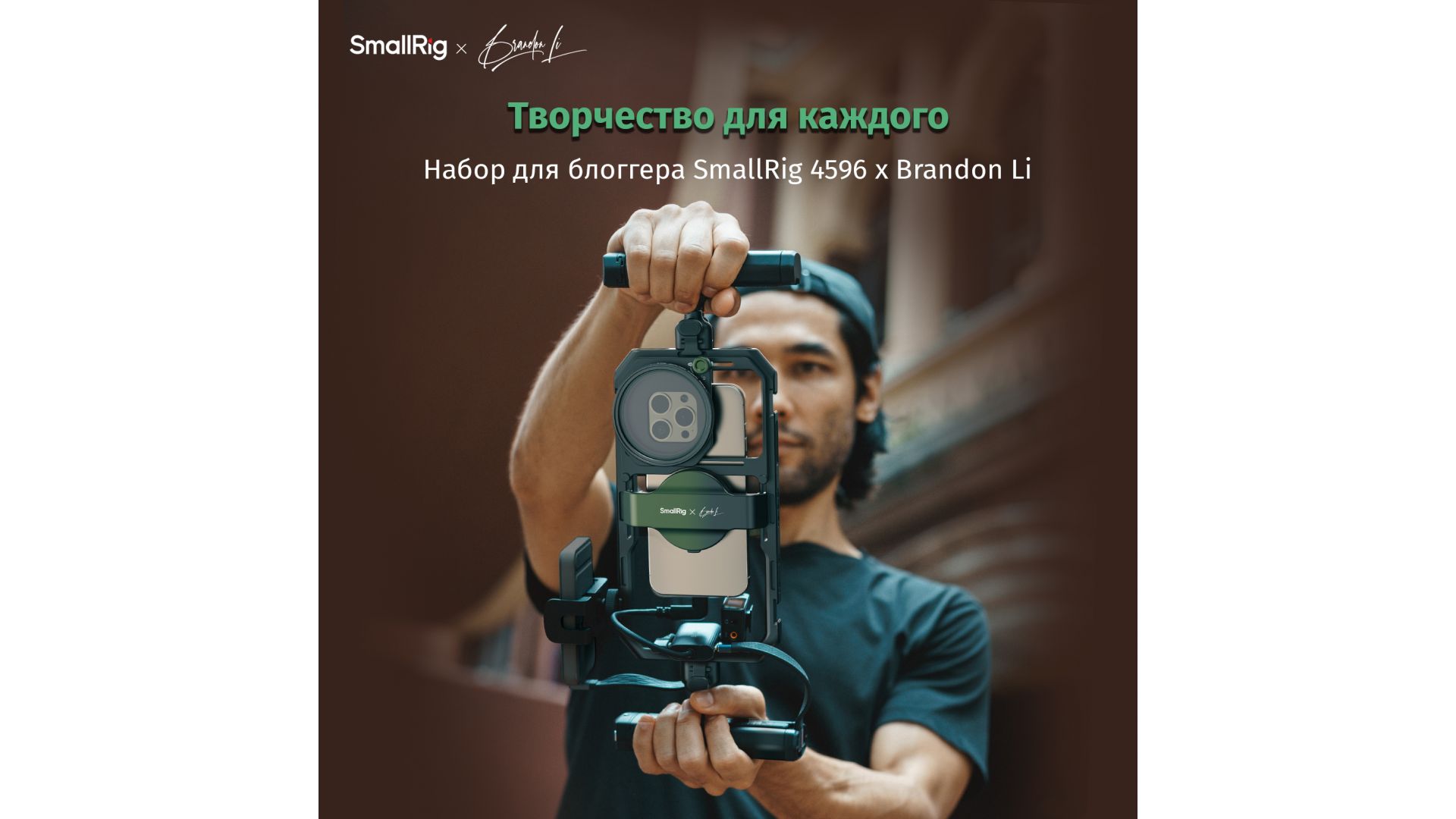 Набор для блоггера SmallRig 4596 x Brandon Li – профессиональное решение для мобильной видеосъемки. Универсальная клетка поддерживает магнитные фильтры 67 мм и адаптируется под разные модели телефонов.